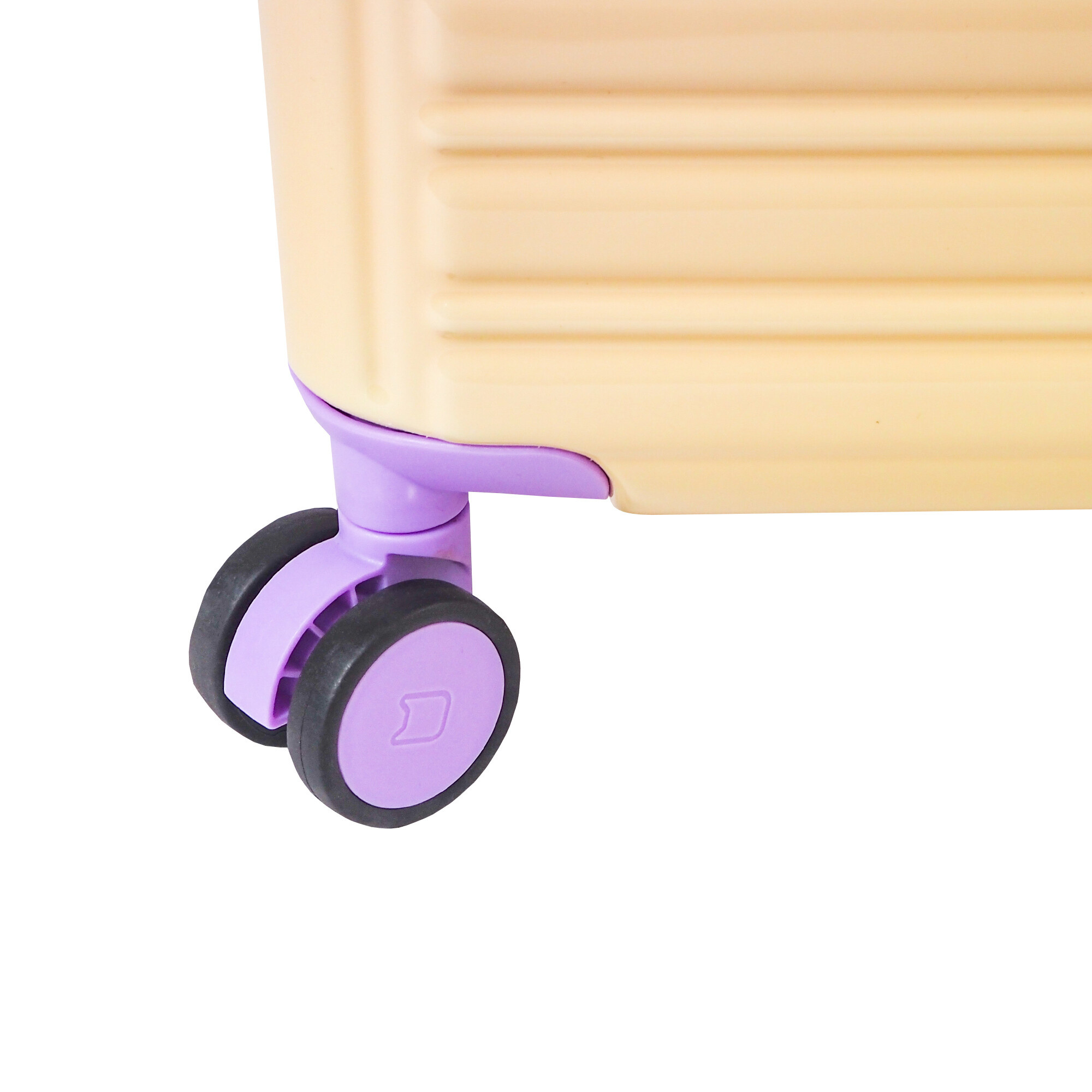 Всеки куфар е оборудван с 4 въртящи се и двойни колела, които позволяват лесна и плавна манипулация във всички посоки. Благодарение на тези колела можете лесно да премествате куфарите дори в тесни пространства, като летищни зали или хотелски коридори. Освен това, двойните колела осигуряват по-голяма стабилност и устойчивост на износване.