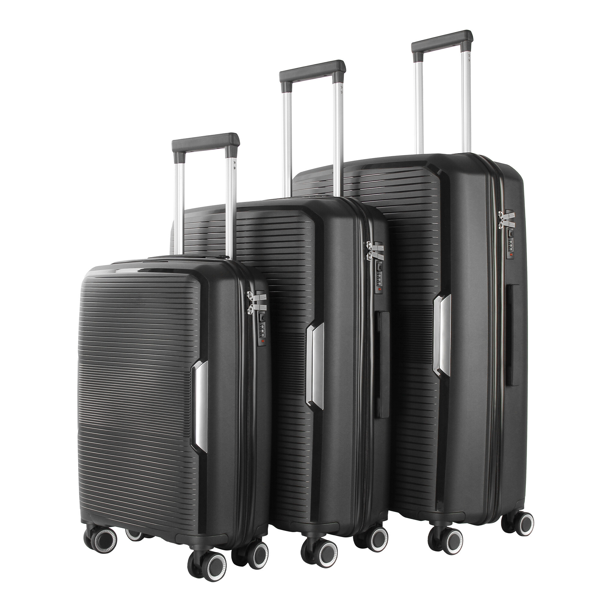 Всеки куфар е оборудван с 4 въртящи се и двойни колела, които позволяват лесна и плавна манипулация във всички посоки. Благодарение на тези колела можете лесно да премествате куфарите дори в тесни пространства, като летищни зали или хотелски коридори. Освен това, двойните колела осигуряват по-голяма стабилност и устойчивост на износване.