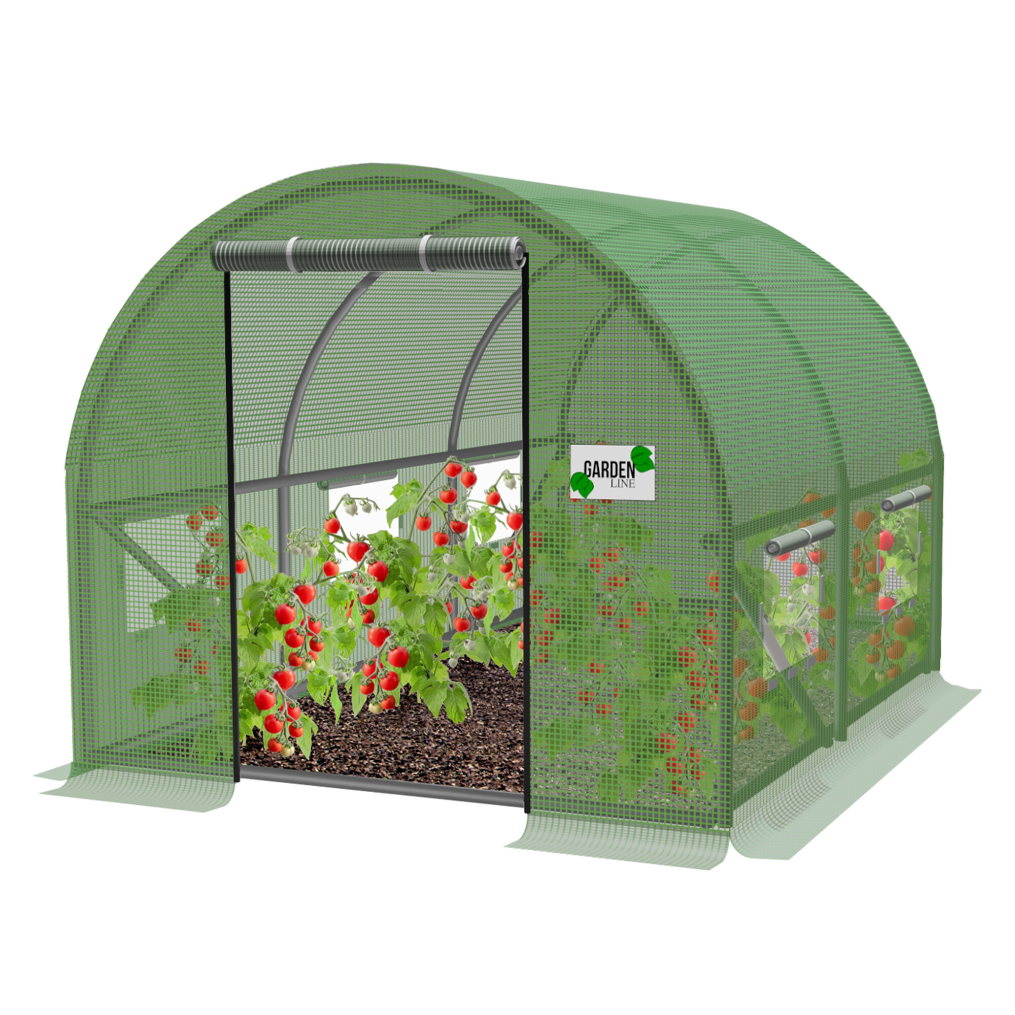 Оптималната височина от 200 см позволява свободно движение и извършване на работа в оранжерията.