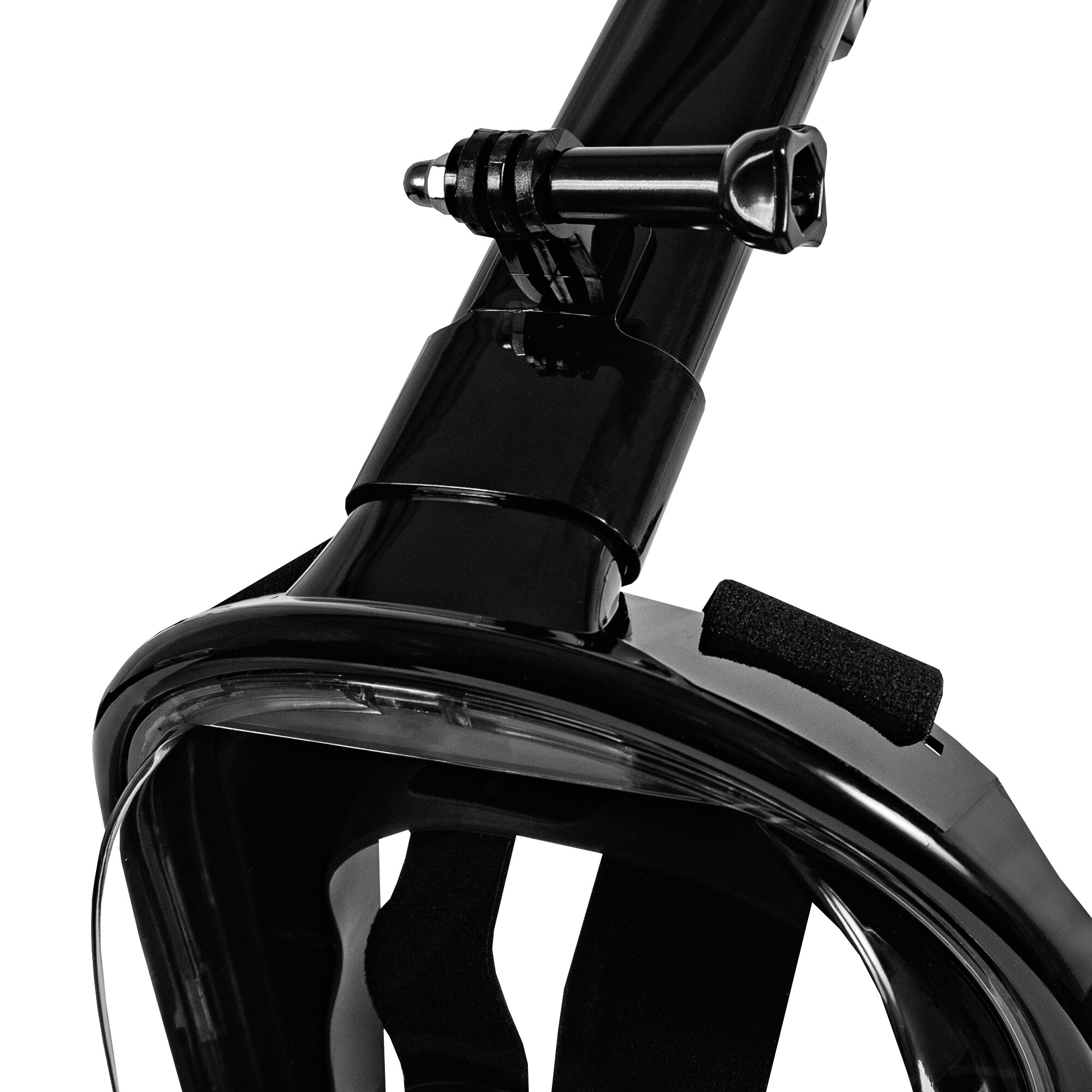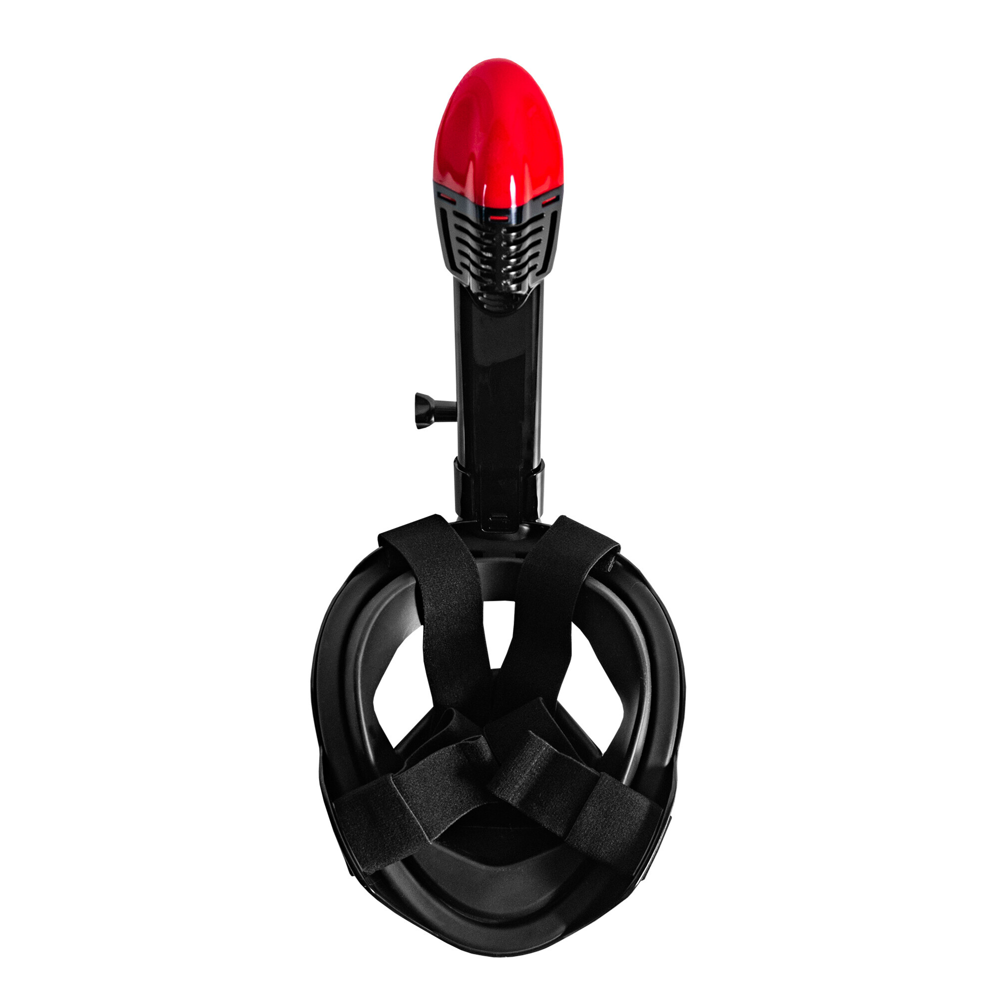 Цялолицева маска с интегриран шнорхел ви осигурява естествено дишане през носа и устата, което прави шнорхелинга на повърхността много приятно занимание и разнообразие за вашата почивка на морето или също в градината в басейна.