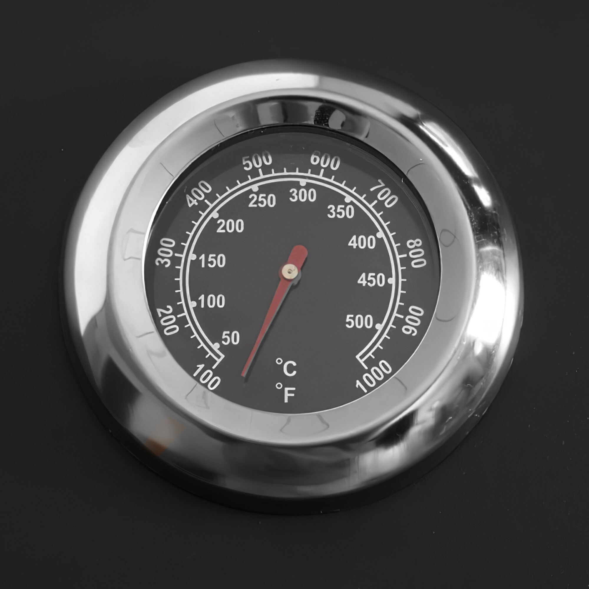 Интегрираният термометър ще ви осигури перфектен контрол върху температурата вътре в грила. Никога повече няма да се налага да гадаете дали температурата е подходяща за вашите любими ястия.