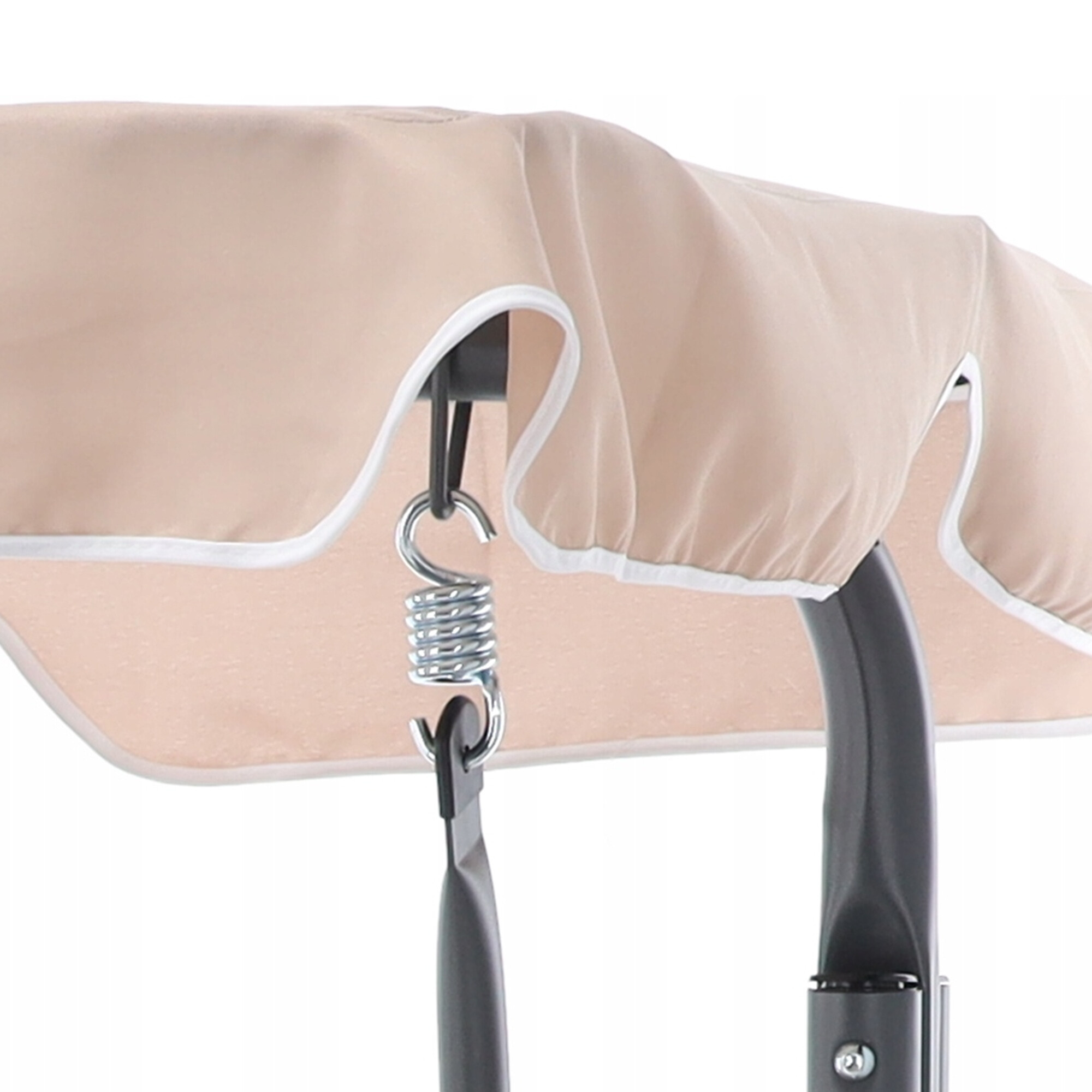 Стабилността и дългият живот на люлката се осигуряват от стоманената конструкция, която е обработена с прахово покритие. Това покритие предпазва конструкцията от корозия и гарантира, че люлката ще изглежда страхотно дори след много години употреба. Здравата конструкция също така гарантира безопасност и стабилност при използване.