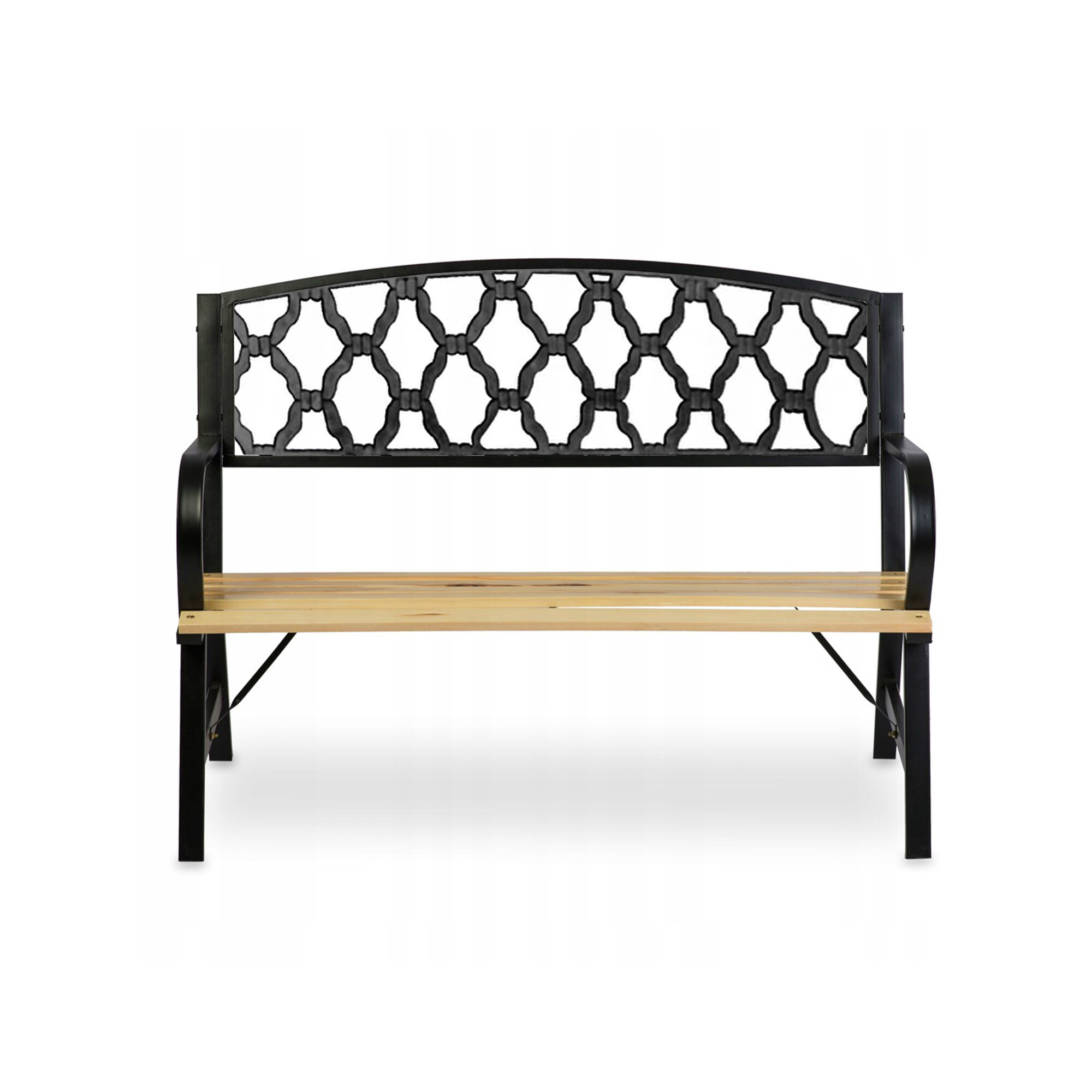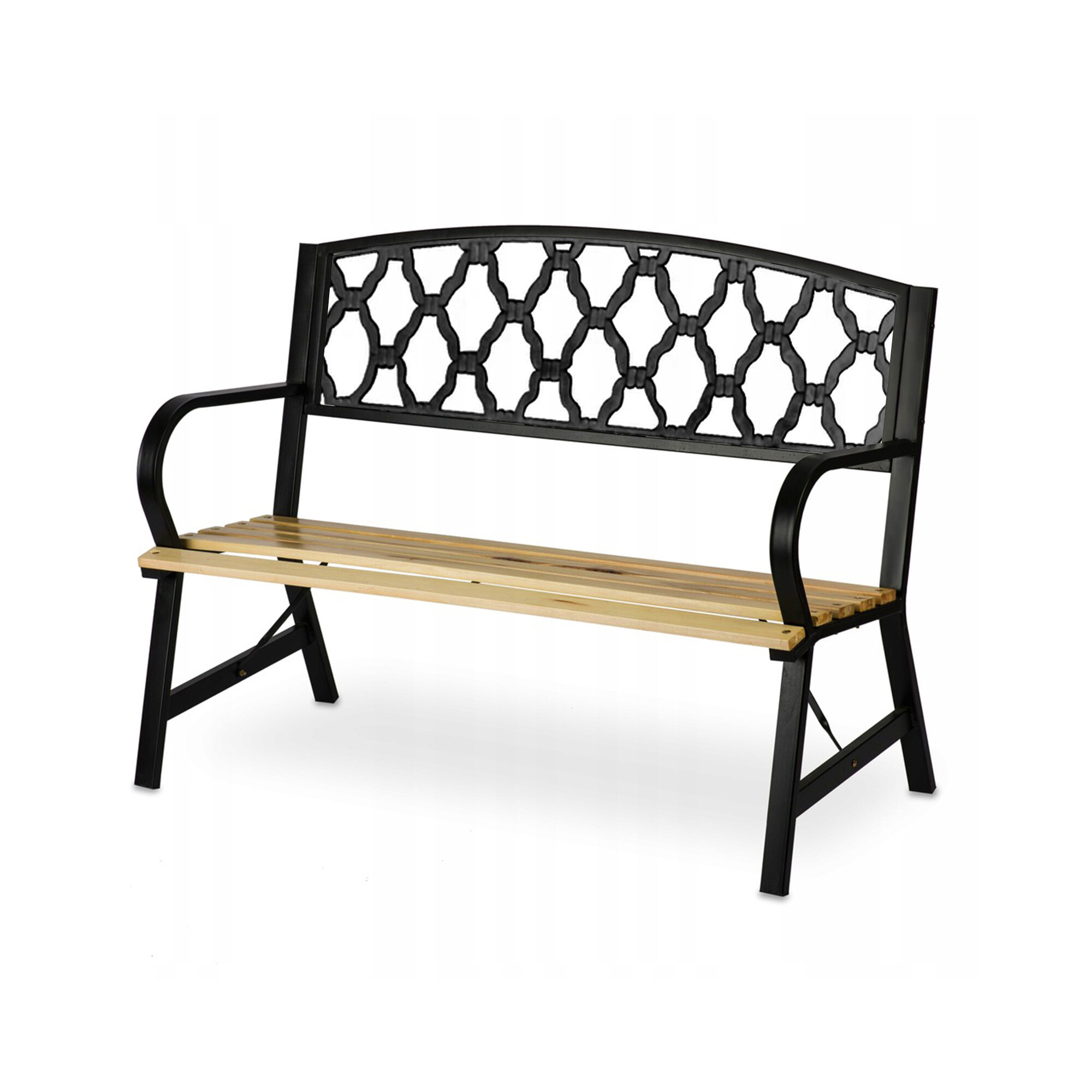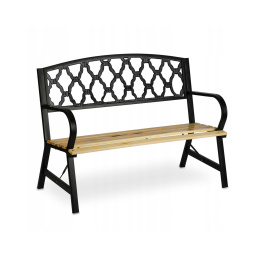 Здрава стоманена конструкция, допълнена с дървени летви. Капацитет на пейката 150 кг.