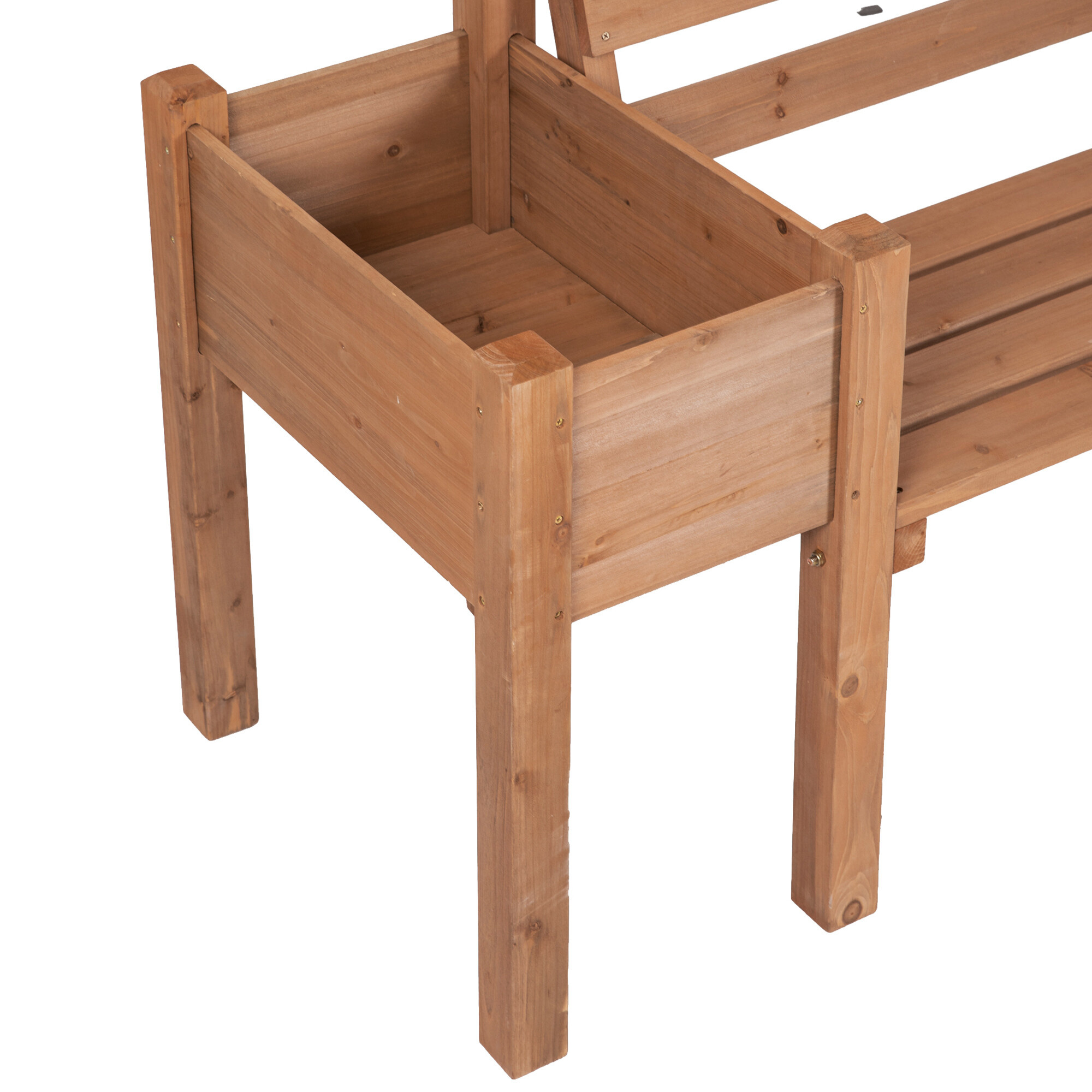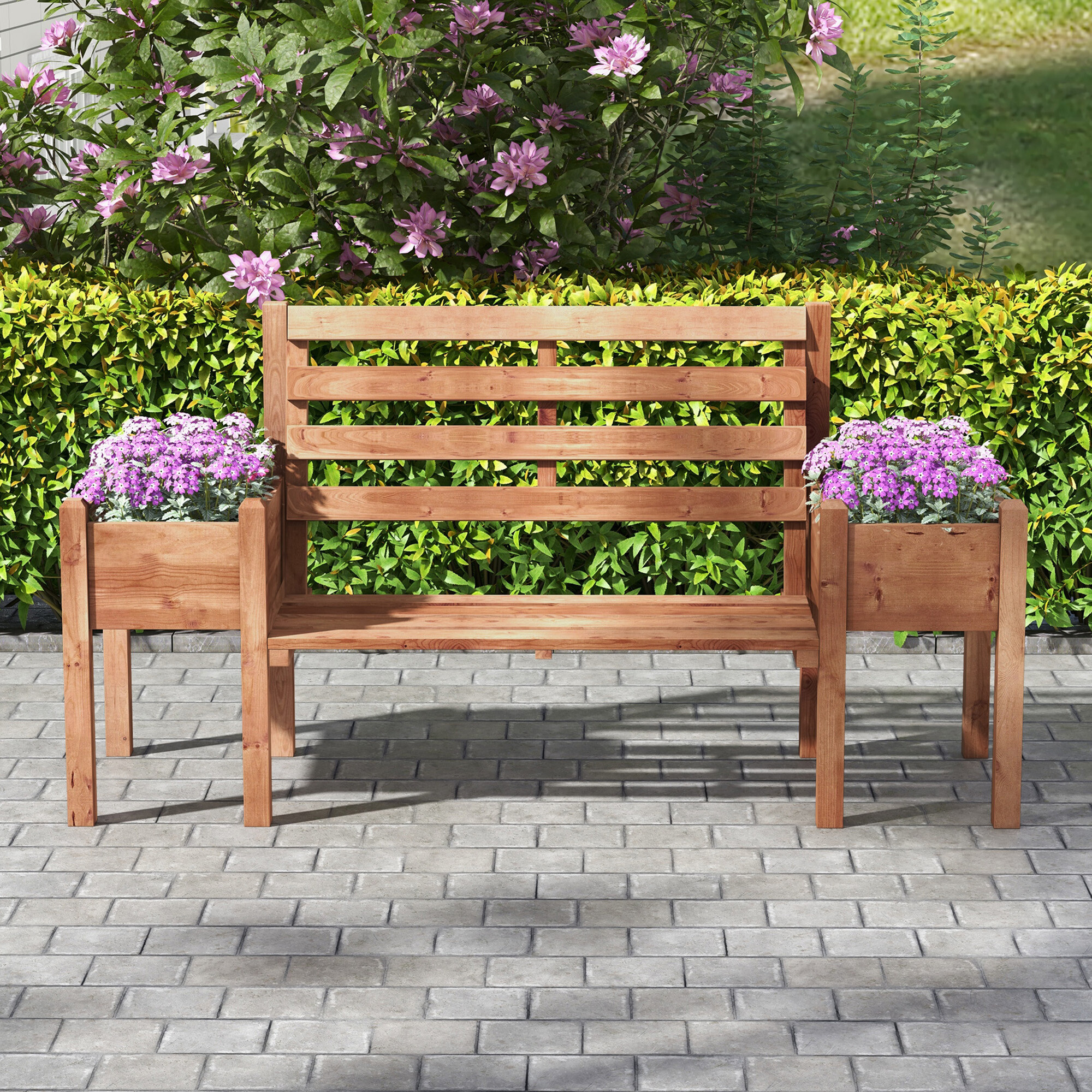 Открийте хармоничното съчетание на комфорт и стил с комбинацията от градинска пейка и повдигнато лехо.