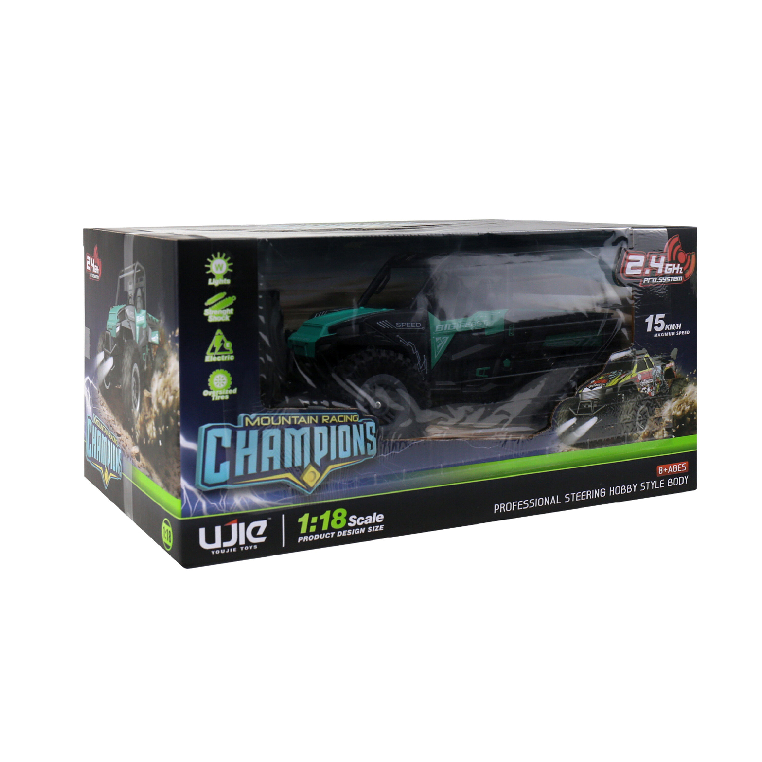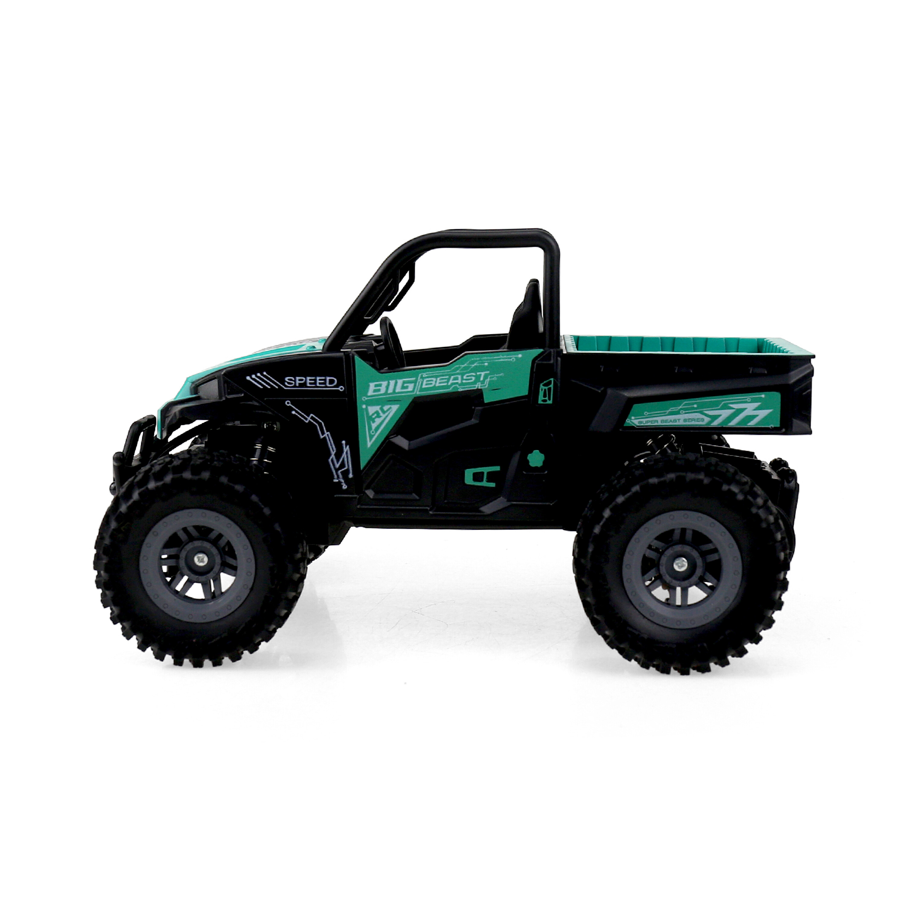 Мощните колела с меки гуми отлично следват терена и позволяват преминаването на привидно непреодолими препятствия. Офроуд автомобилът има отлични характеристики на шофиране върху чакъл, пясък, асфалт и други повърхности. Здравата конструкция от качествени компоненти придава на модела отлична устойчивост на повреди.