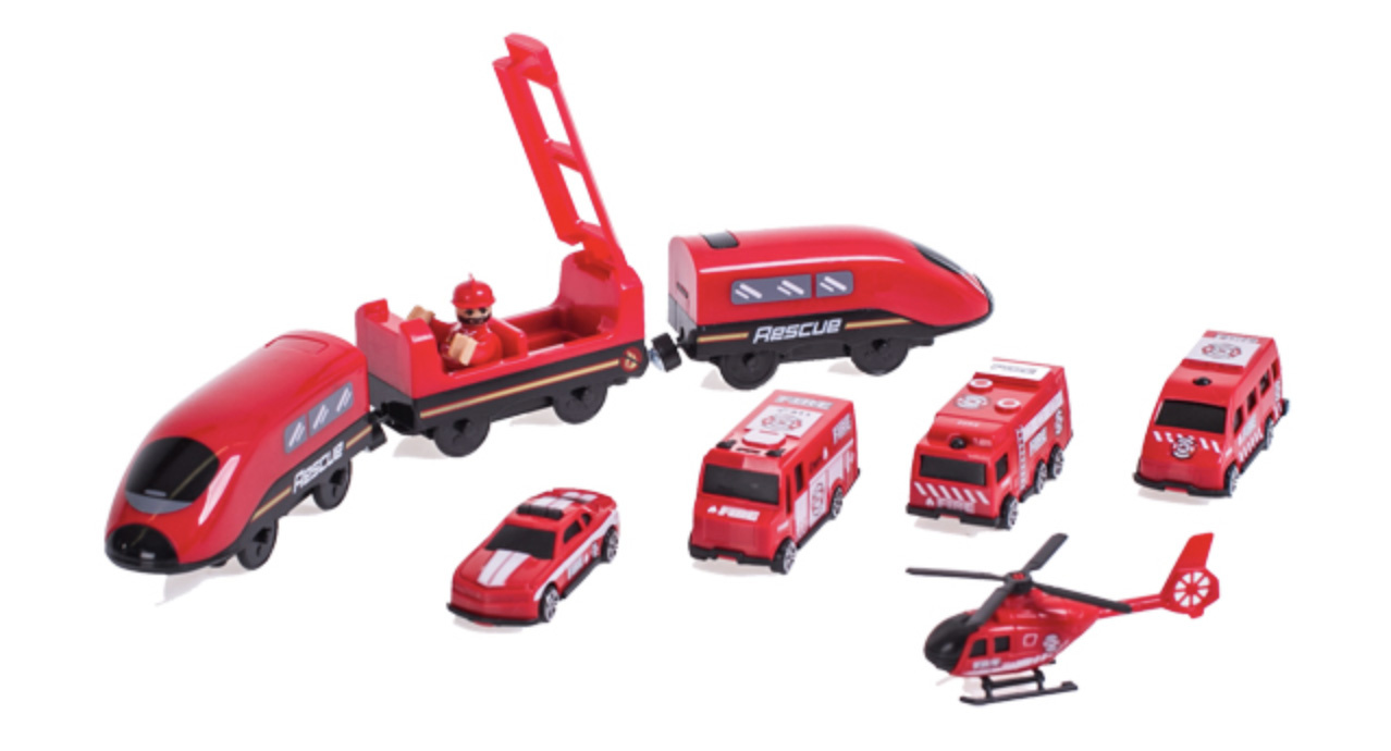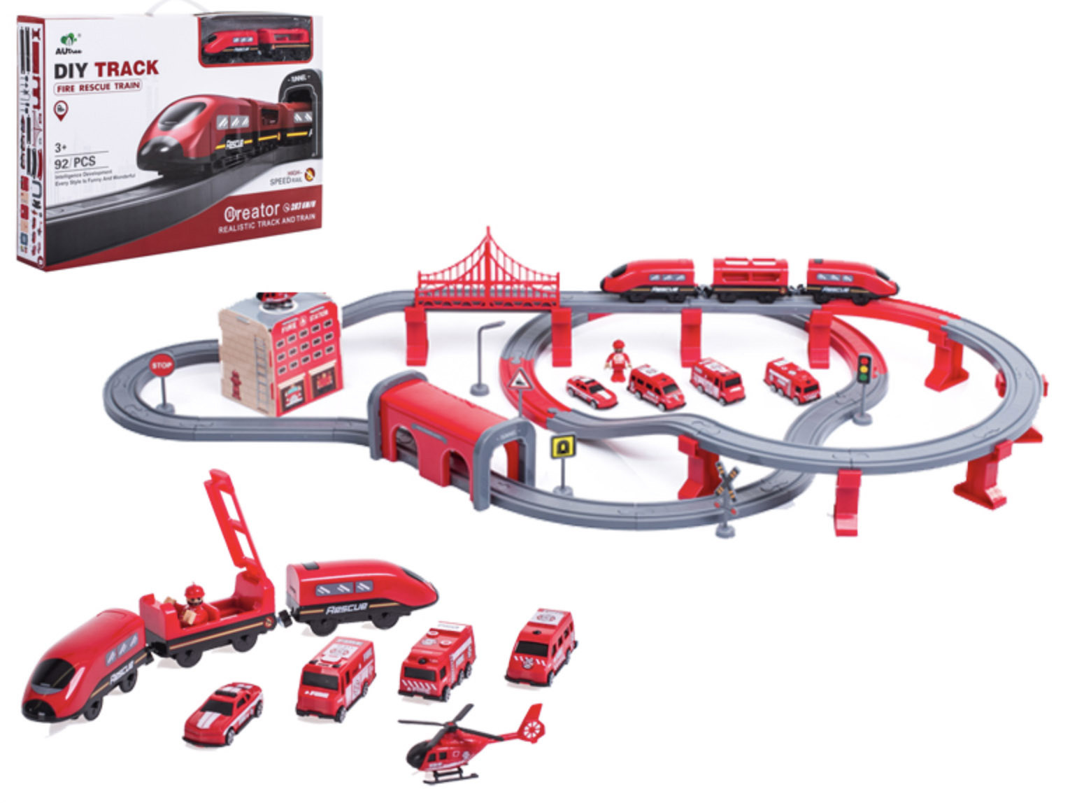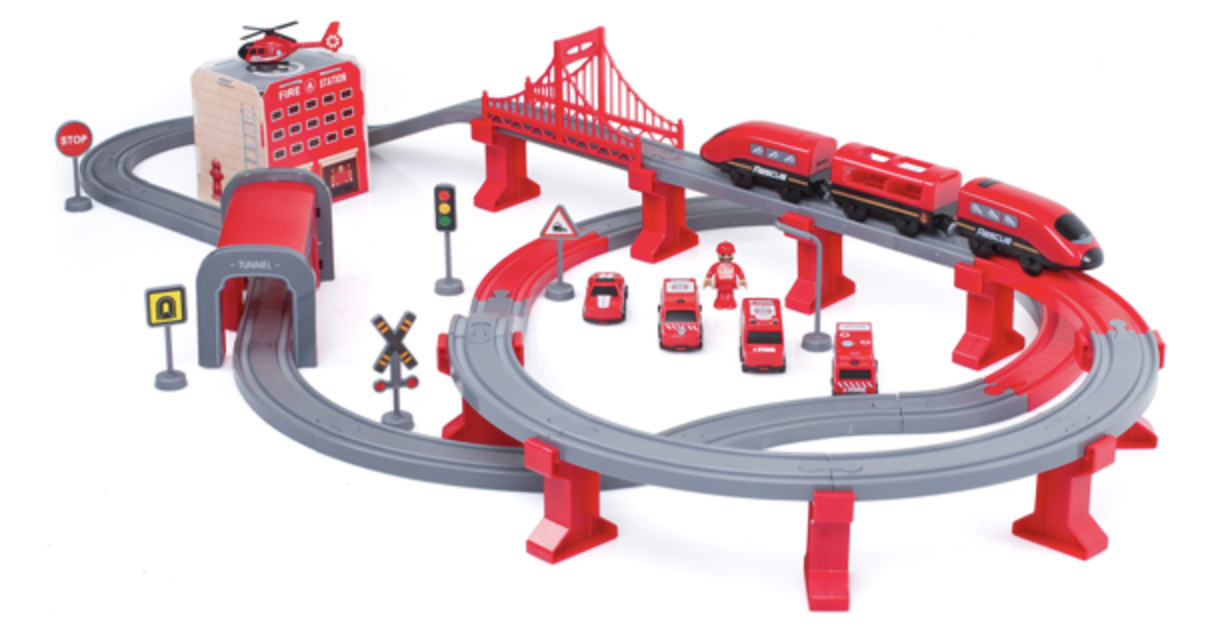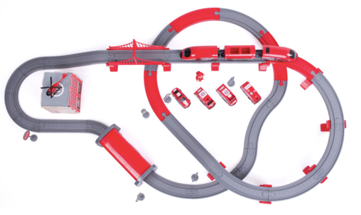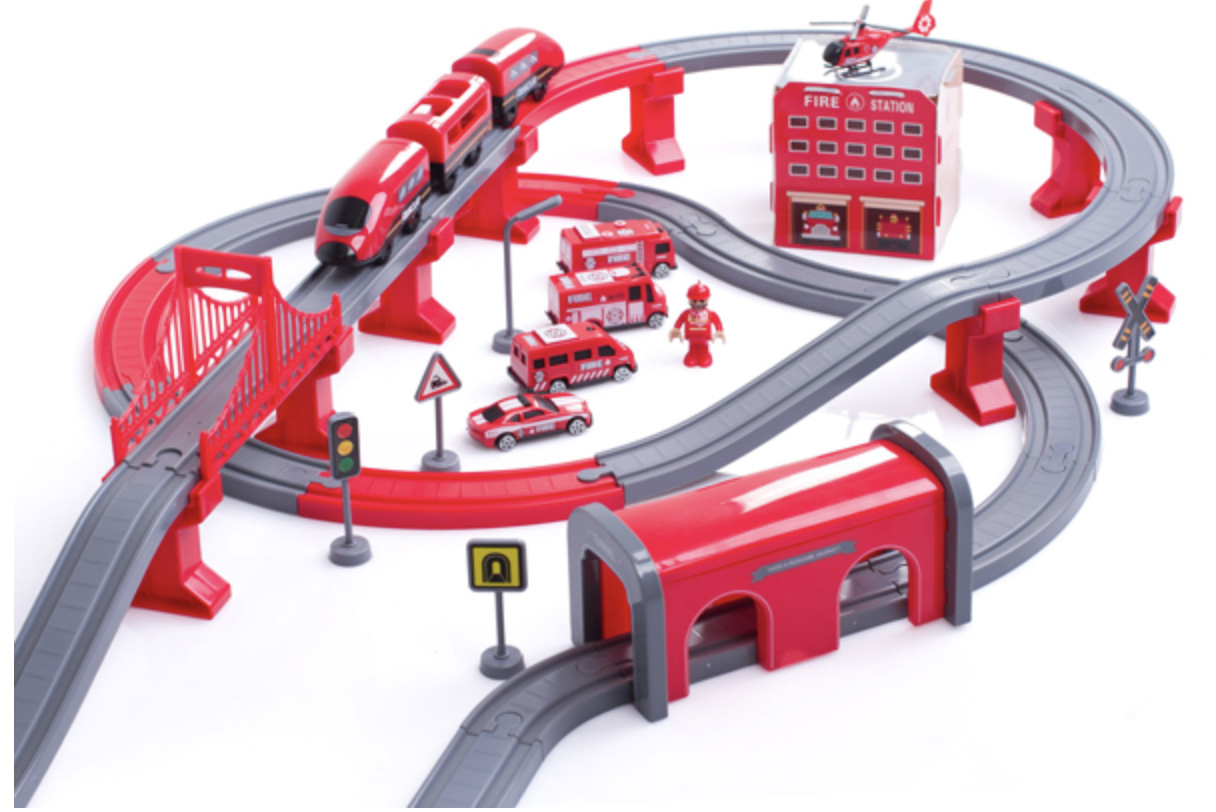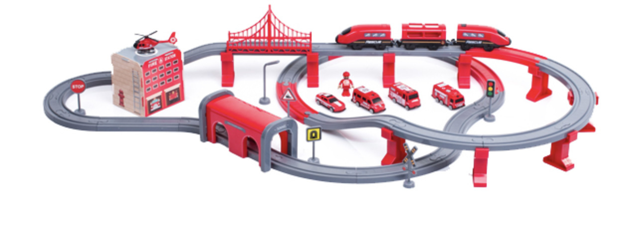 Влаковата писта 2в1 е комбинация от влакова писта и пожарна станция.влакова композиция с богати аксесоари от Aga4Kids.