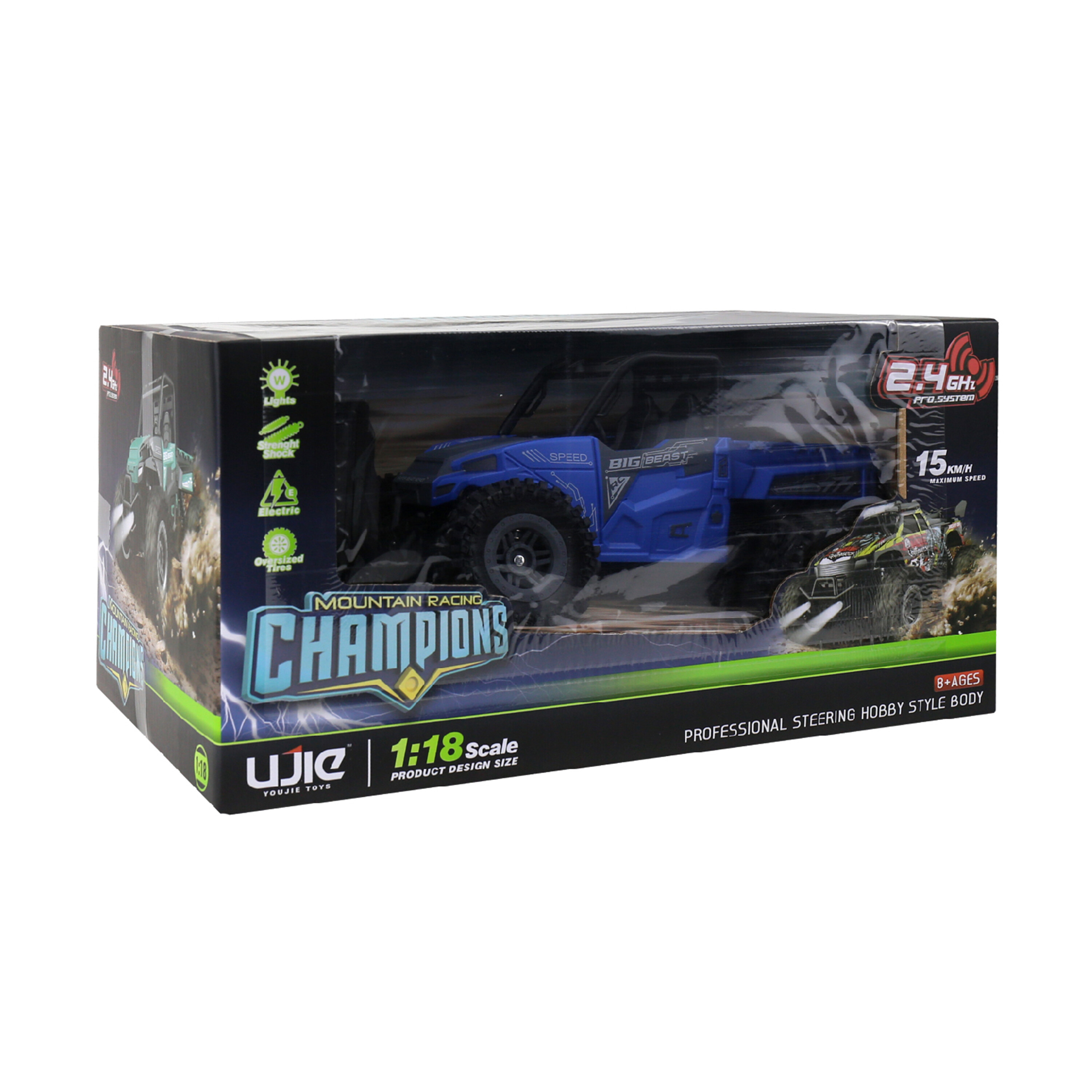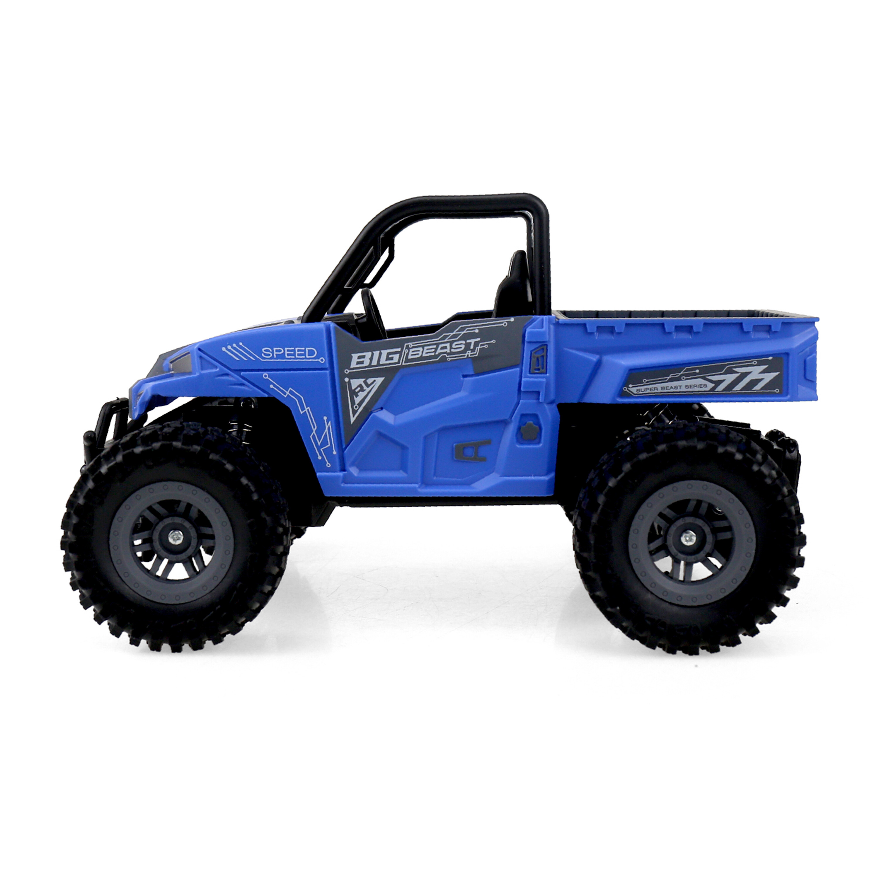 Мощните колела с меки гуми отлично следват терена и позволяват преминаването на привидно непреодолими препятствия. Офроуд автомобилът има отлични характеристики на шофиране върху чакъл, пясък, асфалт и други повърхности. Здравата конструкция от качествени компоненти придава на модела отлична устойчивост на повреди.