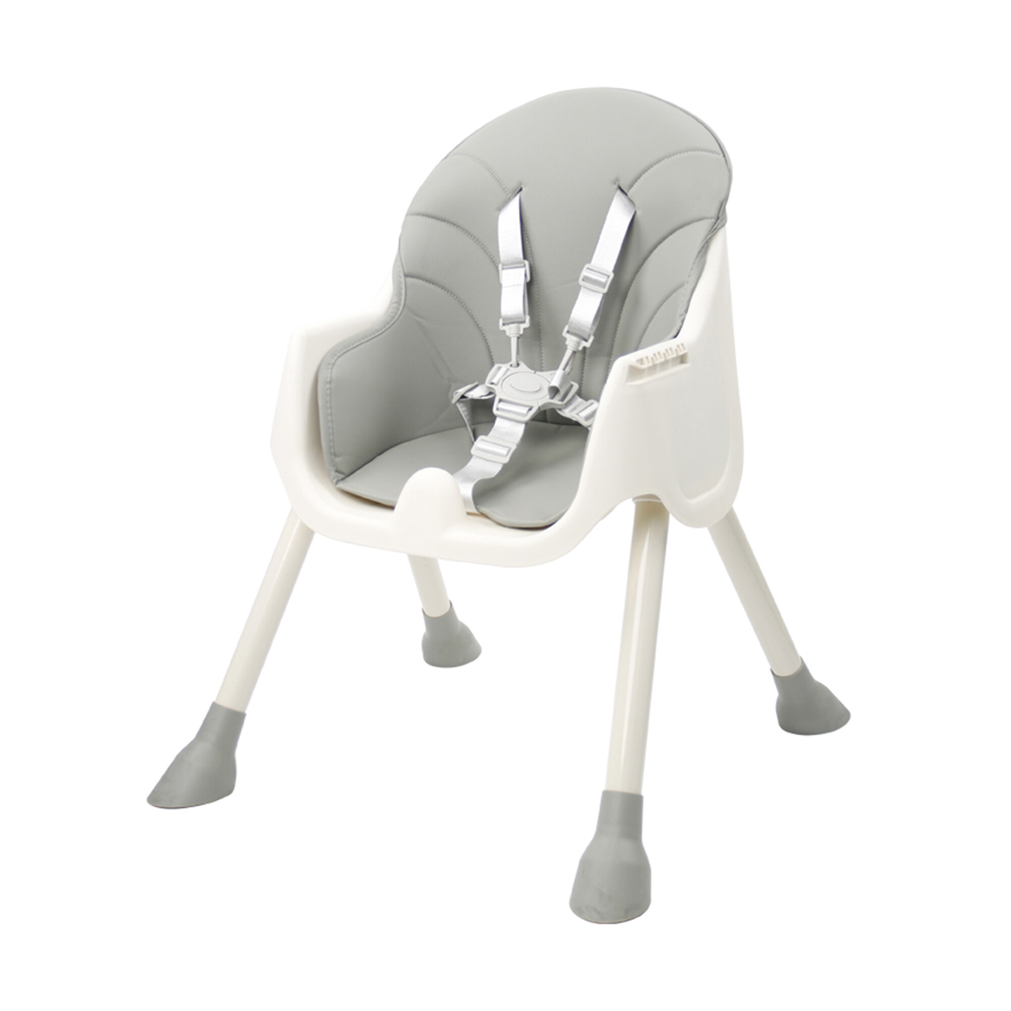 Столчето е оборудвано с петточкови предпазни колани, които надеждно ще задържат вашето дете на място. Лентите лесно се регулират според нуждите и възрастта на вашето дете. Стабилните метални крака с противоплъзгаща обработка гарантират максимална безопасност и стабилност дори на хлъзгави подове.