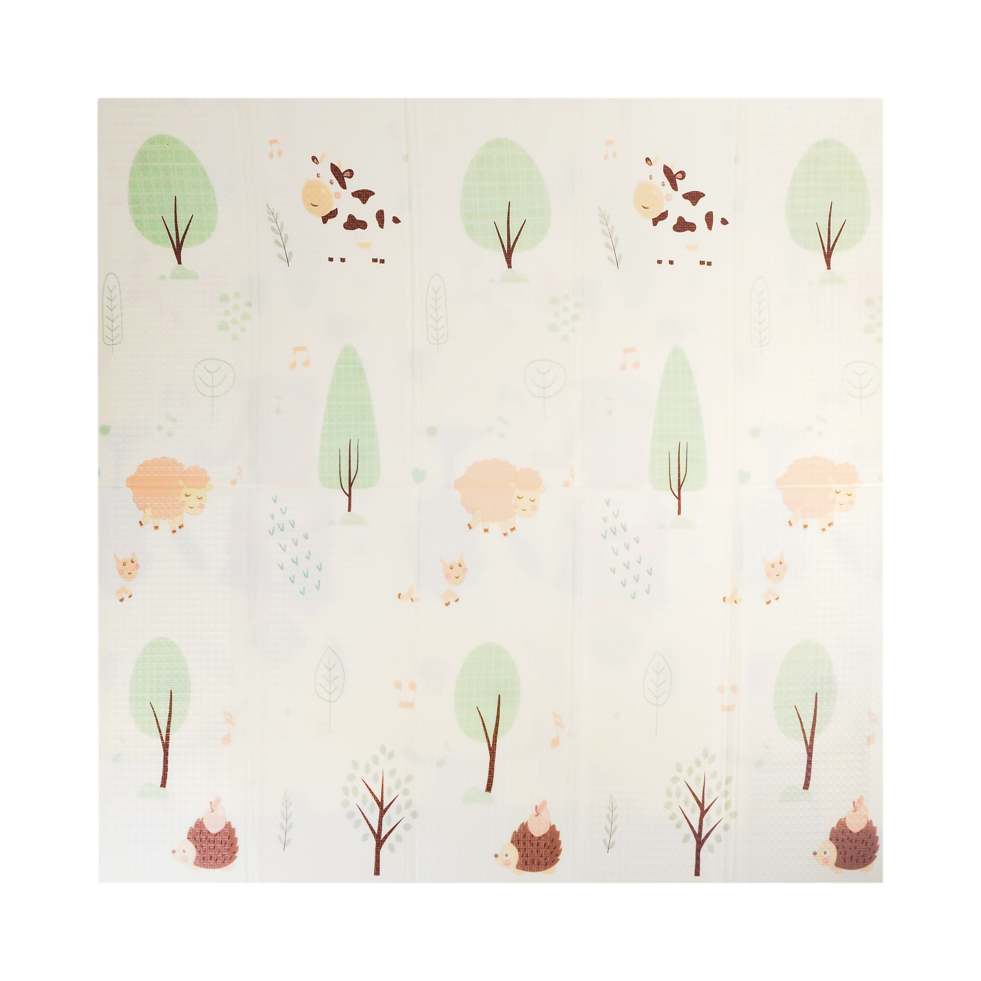Игралната подложка има двустранен печат с весели мотиви и противоплъзгаща повърхност, която осигурява безопасността на всяка игра.