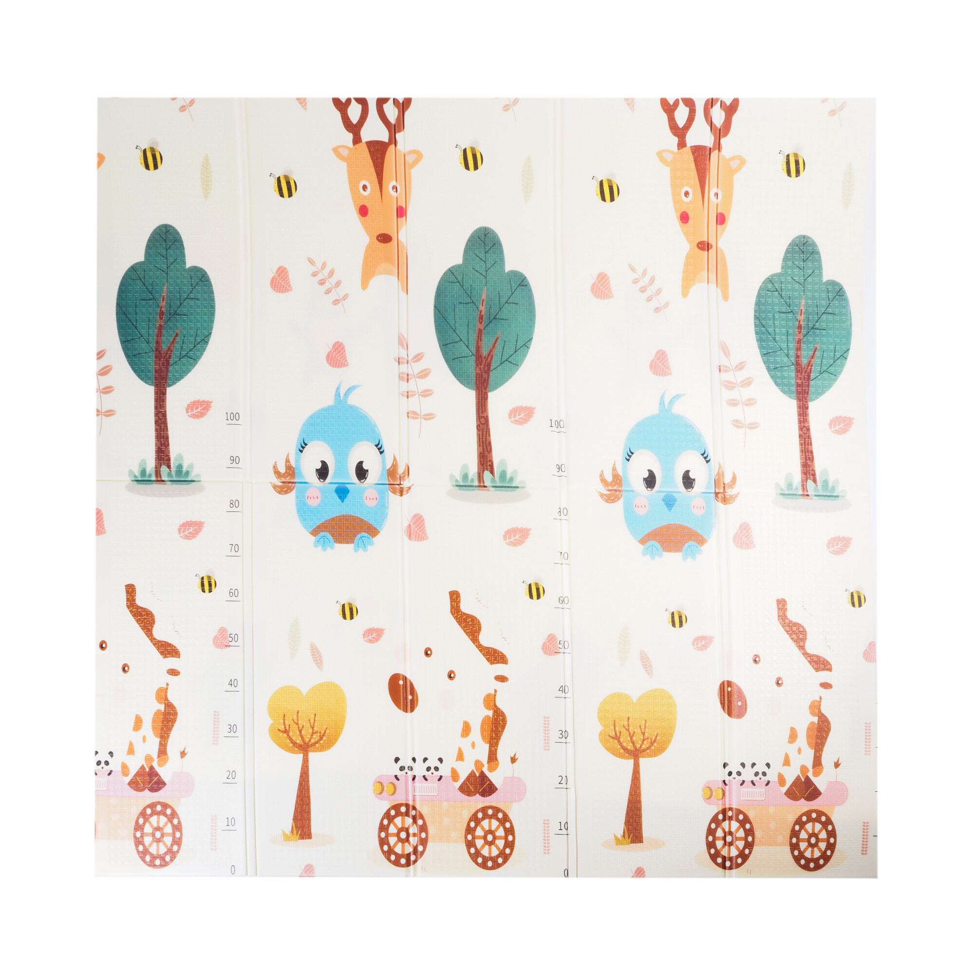 Игралната подложка има двустранен печат с весели мотиви и противоплъзгаща повърхност, която осигурява безопасността на всяка игра.