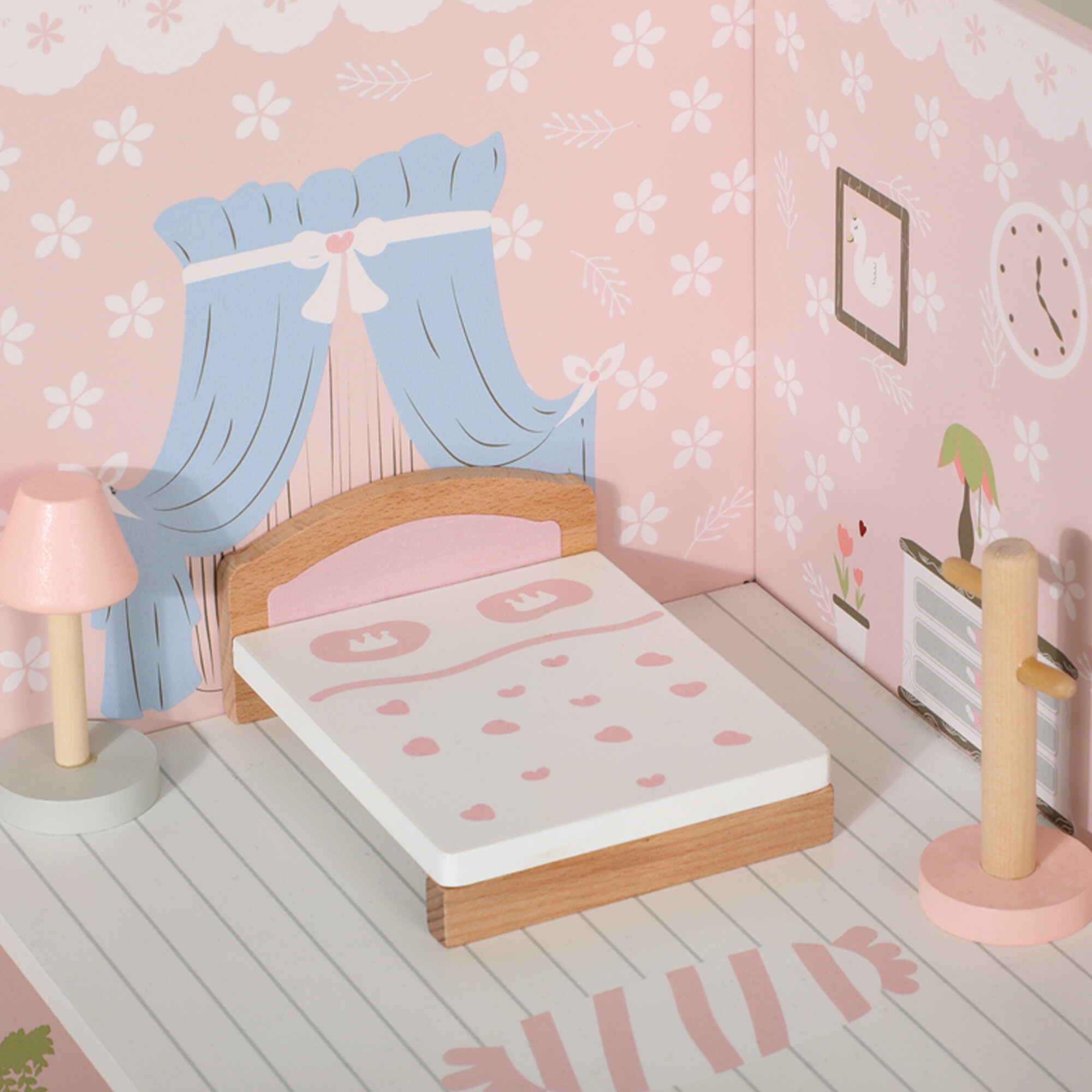 Тази прекрасна дървена къщичка е идеалното място за всички любими кукли и осигурява безкрайни часове забавление. Със своя детайлен дизайн и качествена изработка, той ще стане незаменима част от всяка детска стая.