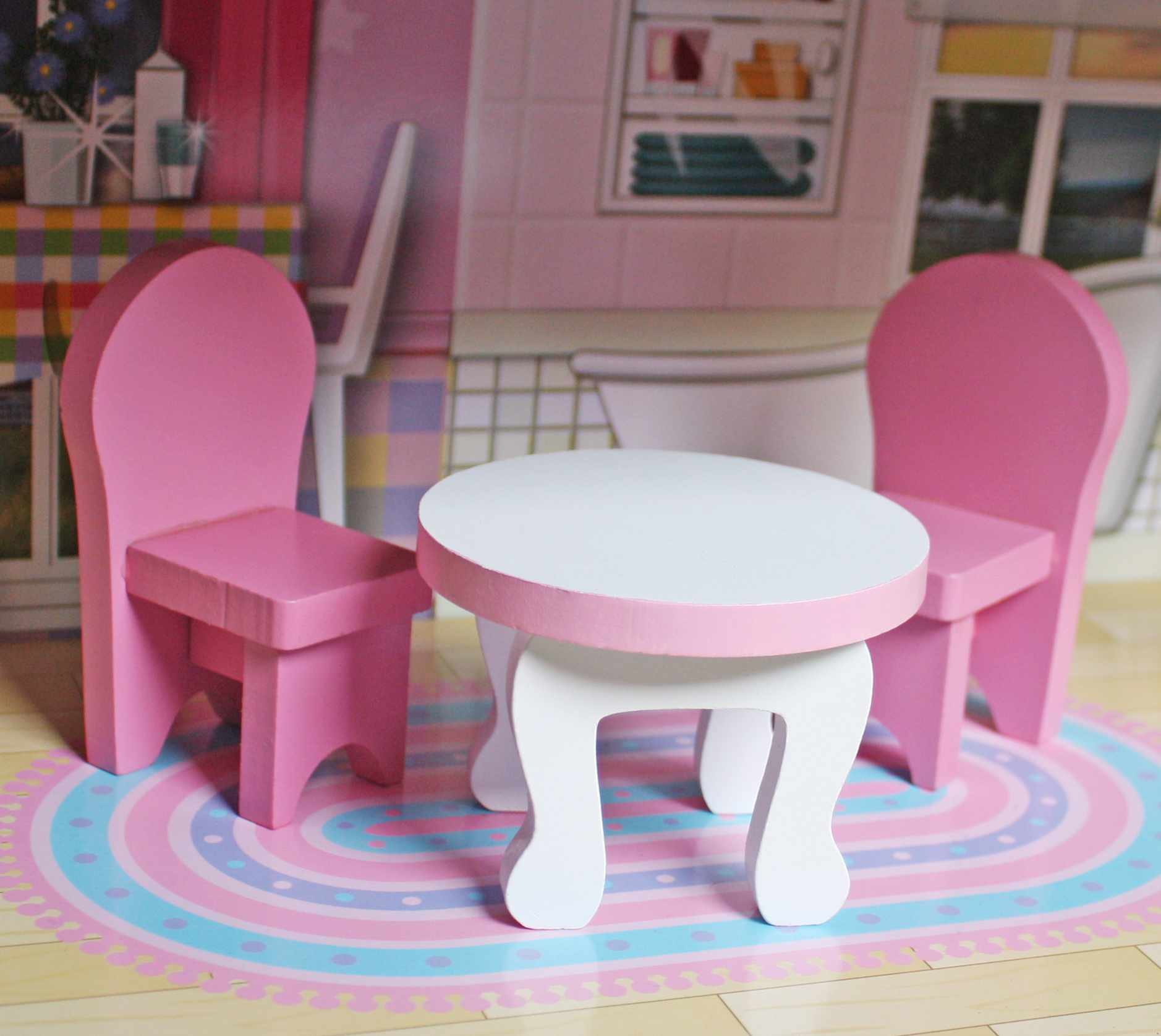 Къщичката за кукли е изработена от висококачествена MDF дървесина с голямо внимание към детайлите и най-високо качество на изработка, като са премахнати и острите ръбове, които са от съществено значение за безопасността на вашето дете.