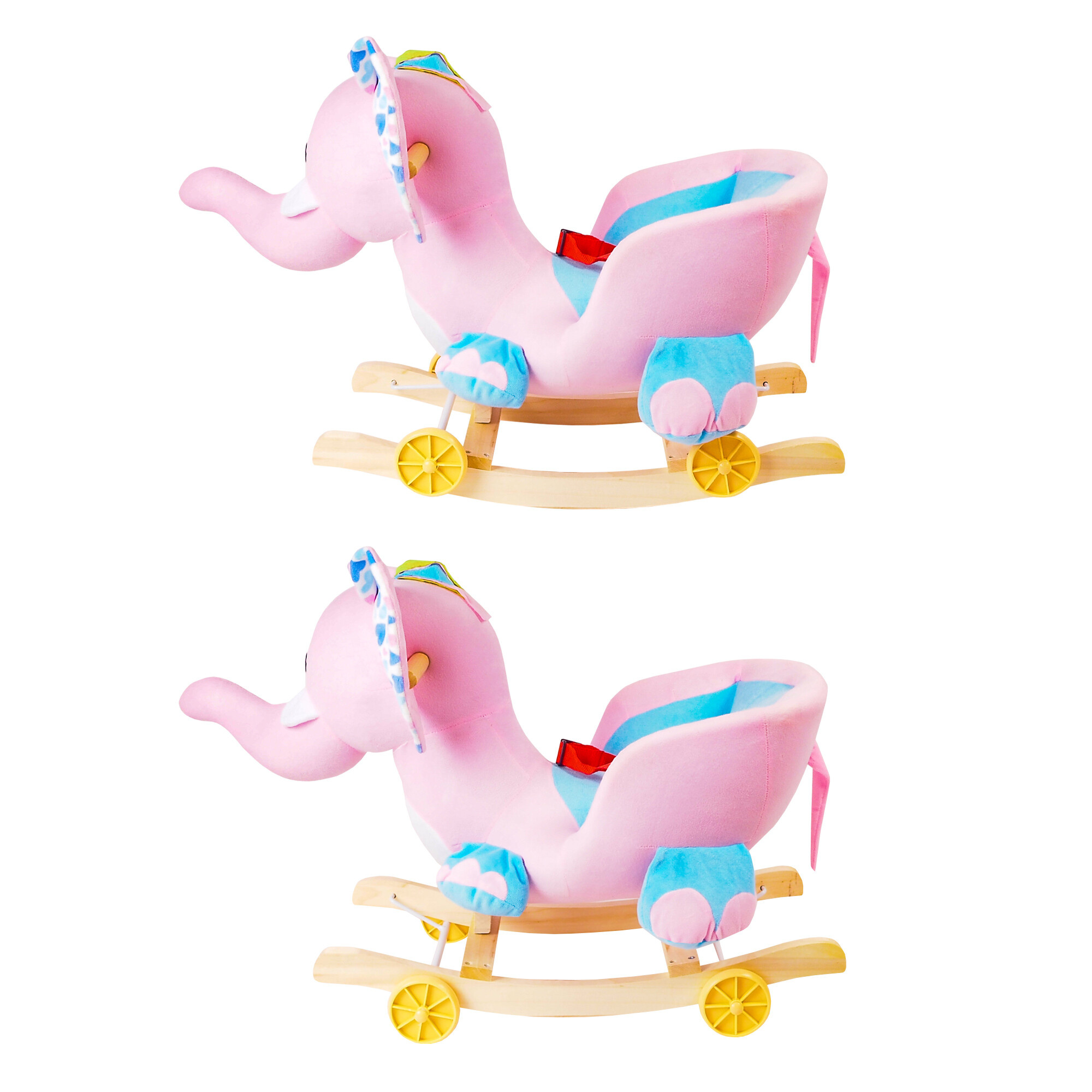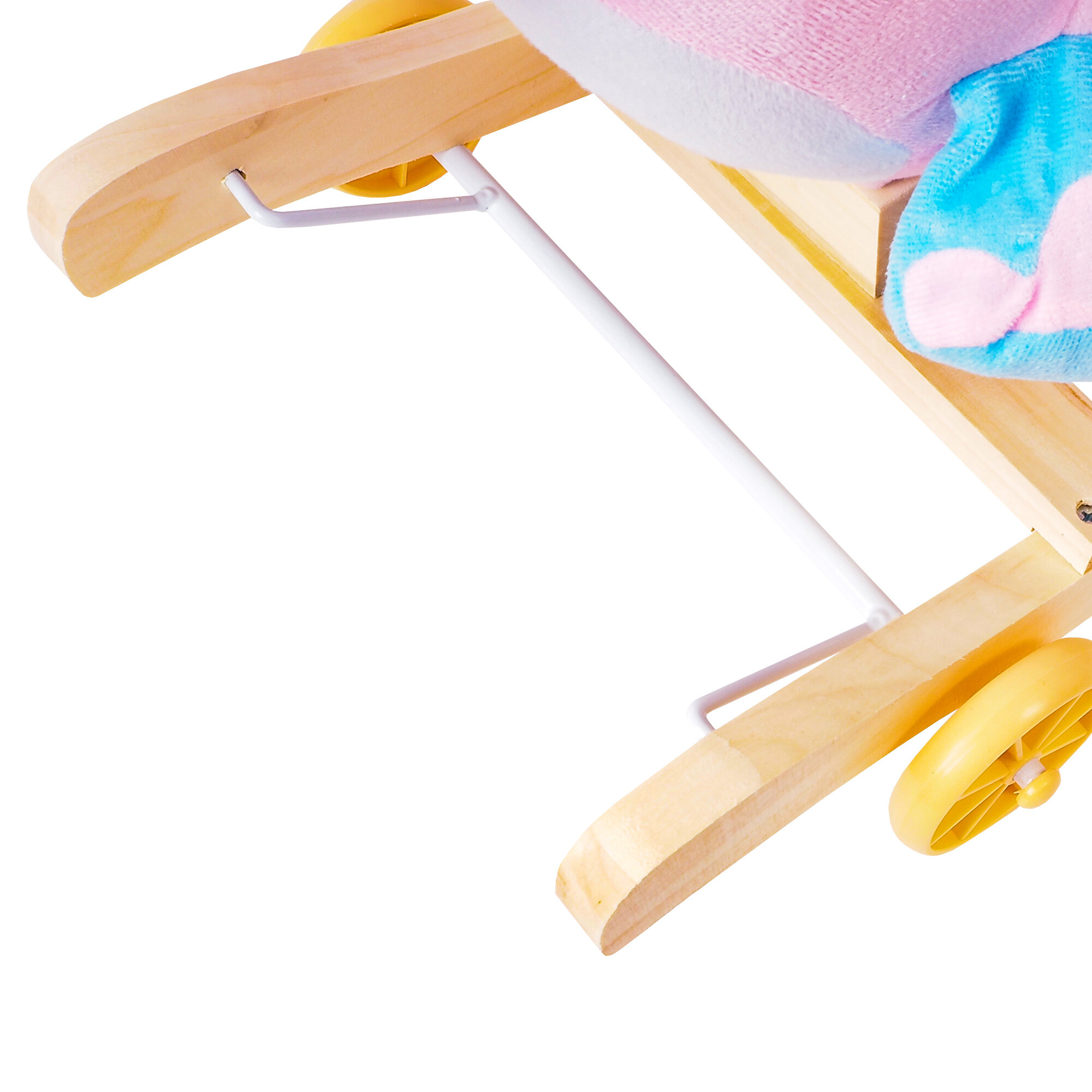здравите дървени перила и дръжки помагат на детето да пази равновесие. Превъртете простия механизъм на релсите, за да разширите колелата и да превърнете люлеещата се играчка в яздещ Бамби за секунди.
