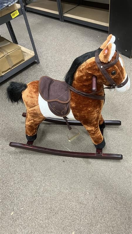 Характеристики и функции: Конят издава звуци на ржене, галопиране и движи опашката си Играчката има седло с стремена, юзда и дървени дръжки Приятен плюшен материал Възможност за демонтаж на люлеещата се рамка Здрави дръжки на врата и стремената на коня осигуряват на детето чувство за безопасност Батериите не са включени в играчката