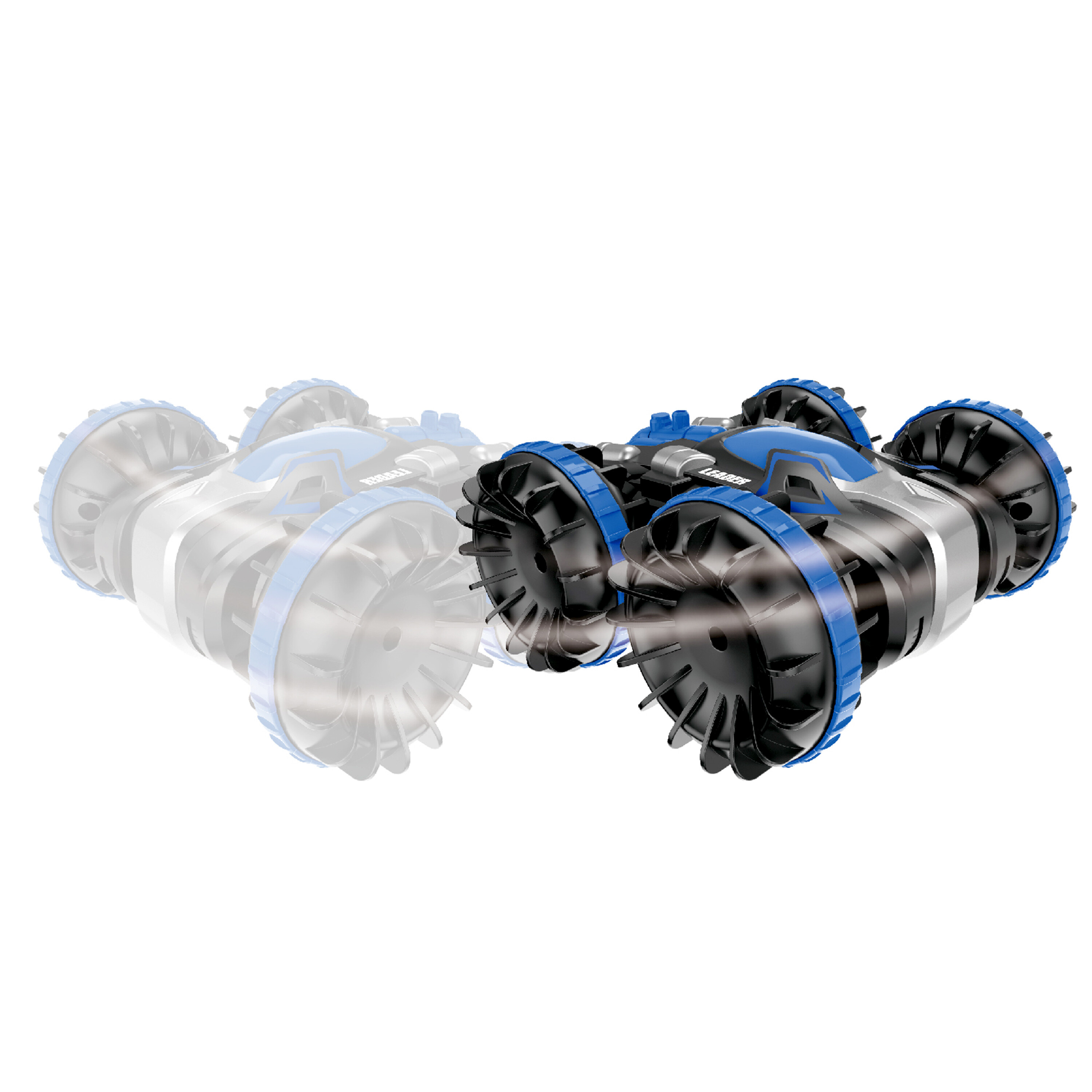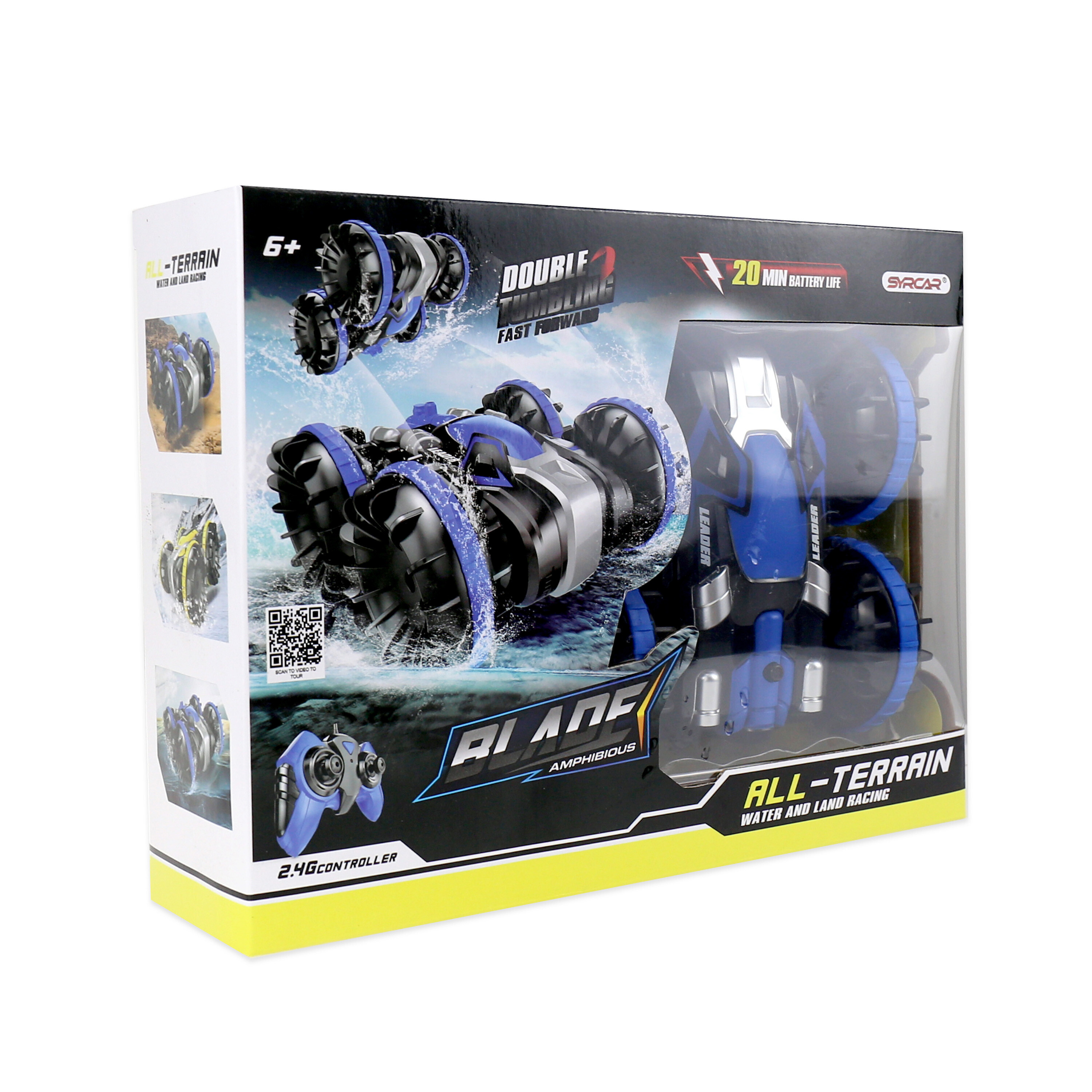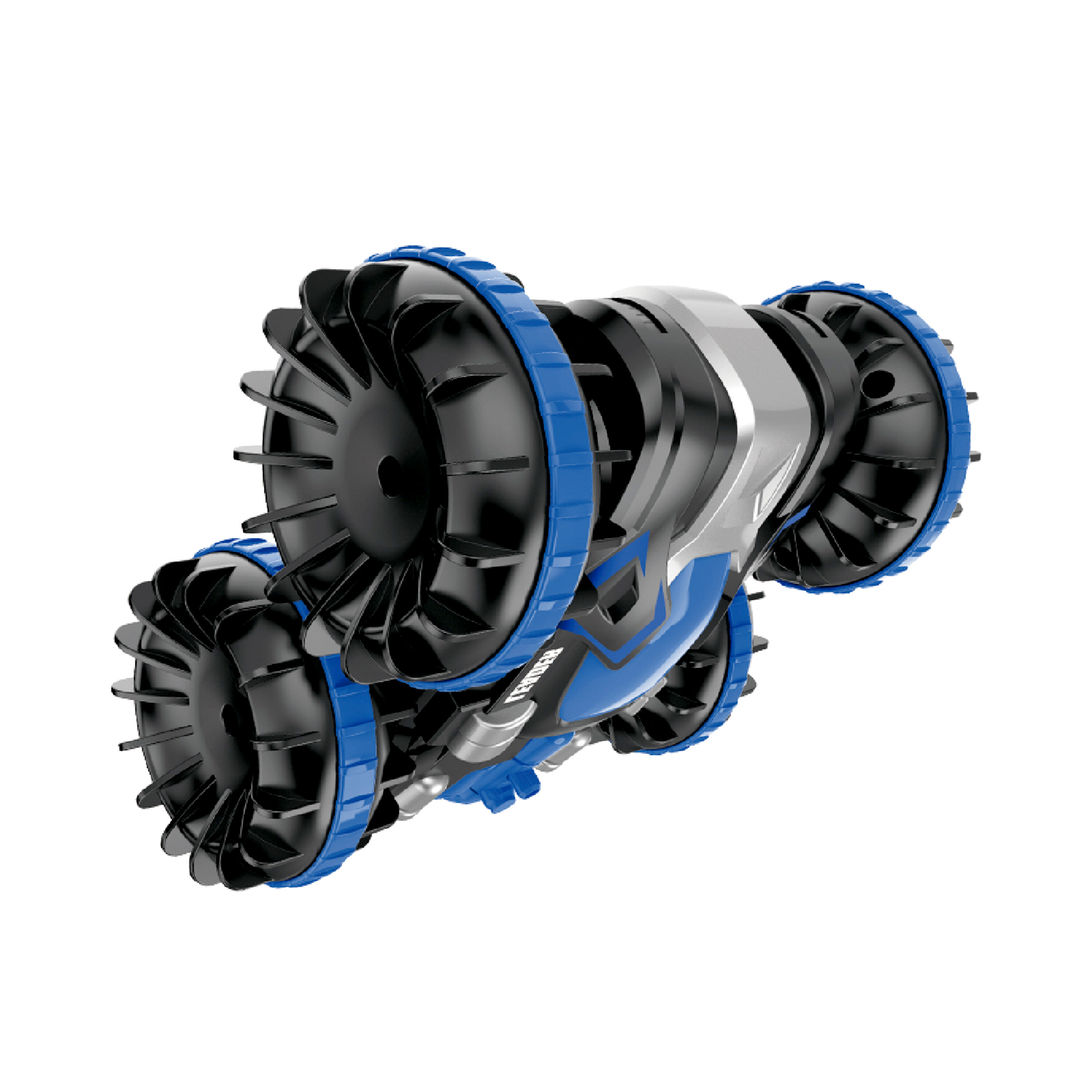 Количка с дистанционно управление, която се движи не само по земята, но и по вода.Гумите със специален протектор осигуряват отлично сцепление на терена и добра управляемост при шофиране във вода.