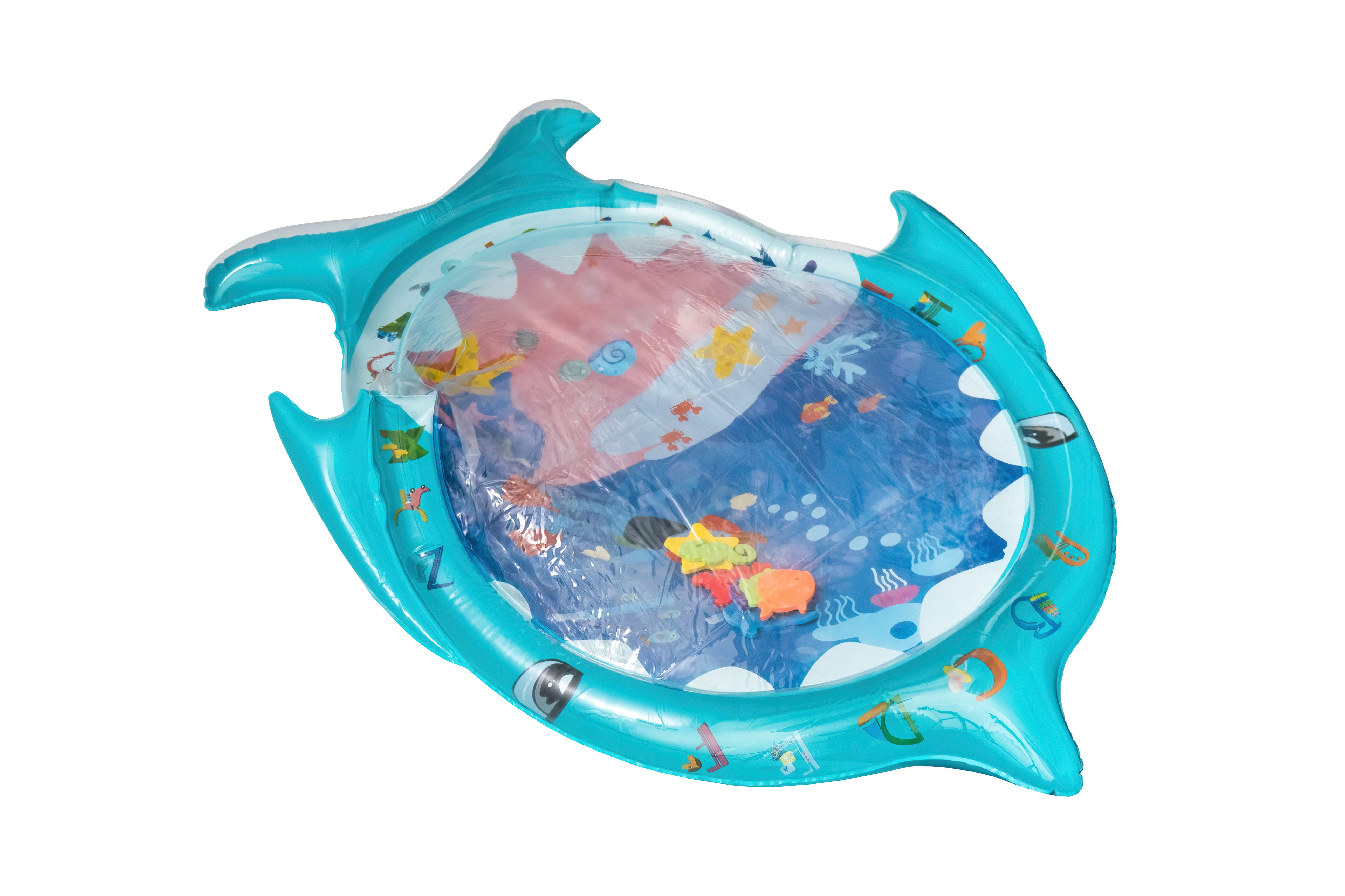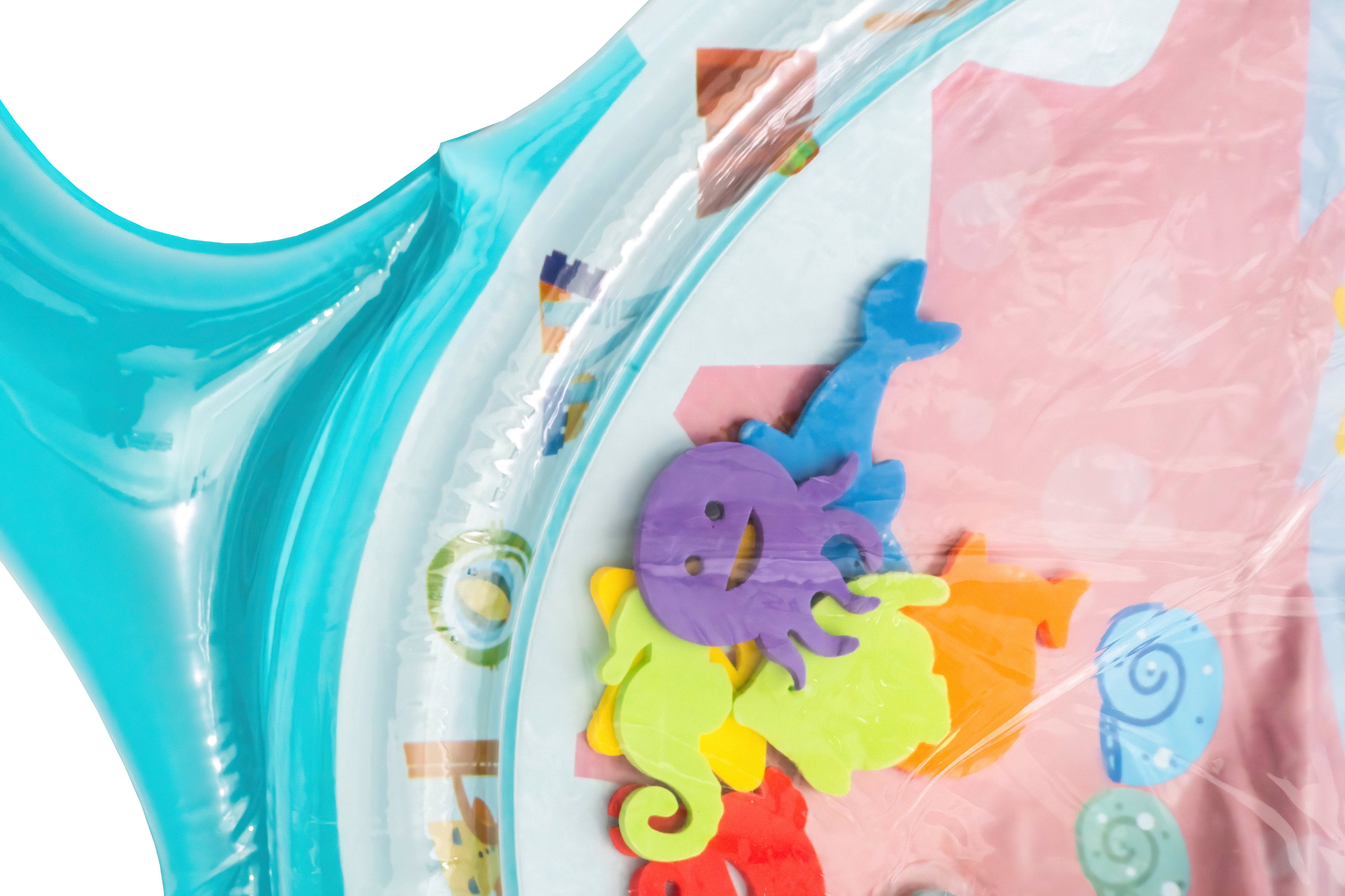 Просто надуйте ръба на подложката и напълнете центъра с вода или можете да я надуете.благодарение на водата във вътрешността, елементите във формата на морски животни започват да се движат, насърчавайки детето да играе.
