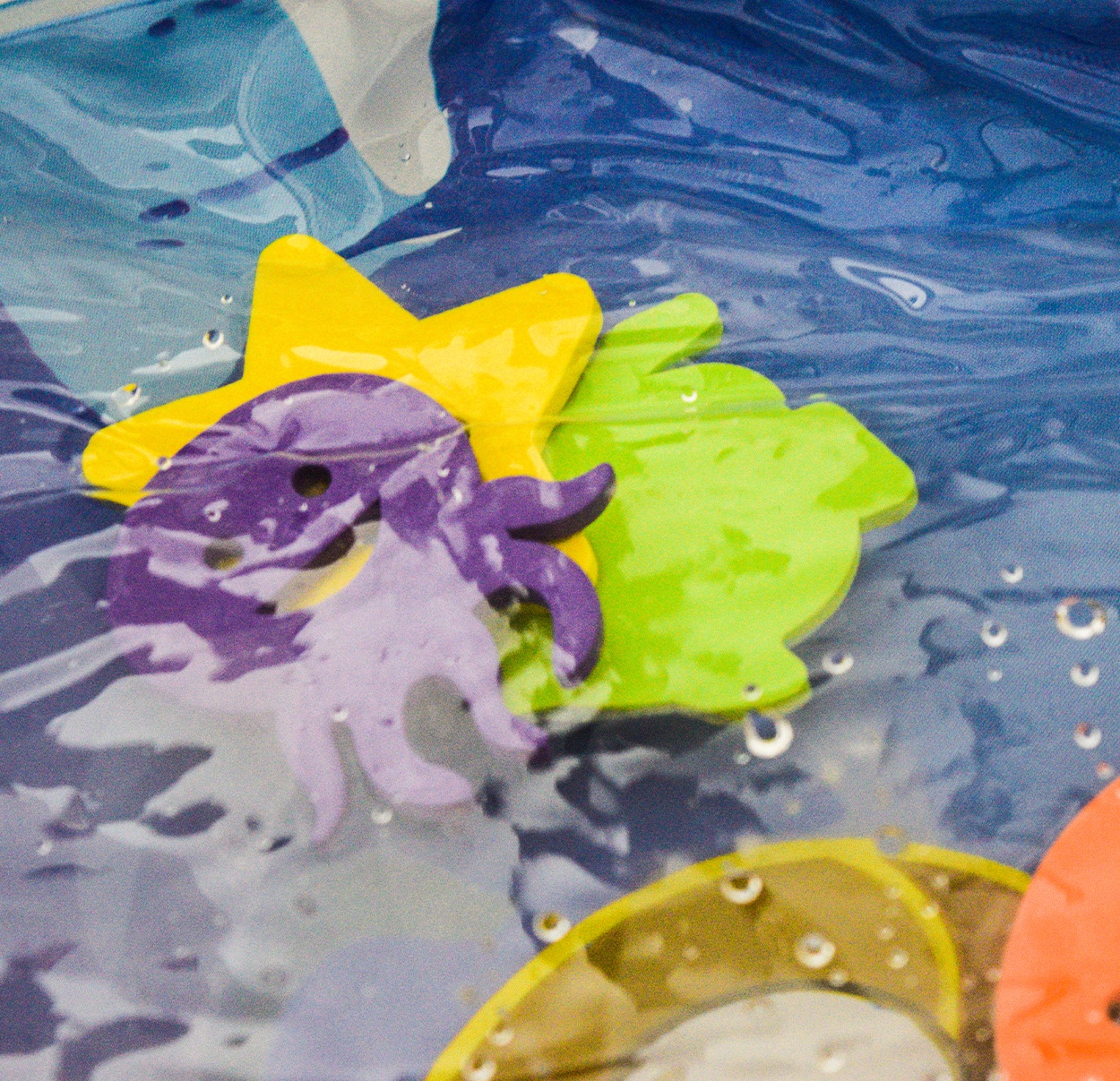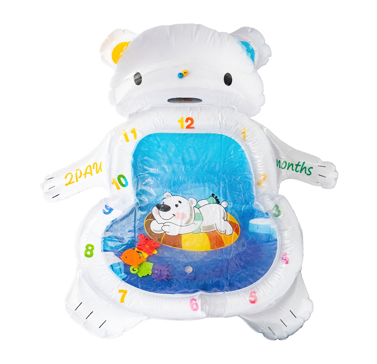 Просто надуйте ръба на подложката и напълнете центъра с вода или можете да я надуете.благодарение на водата във вътрешността, елементите във формата на морски животни започват да се движат, насърчавайки детето да играе.