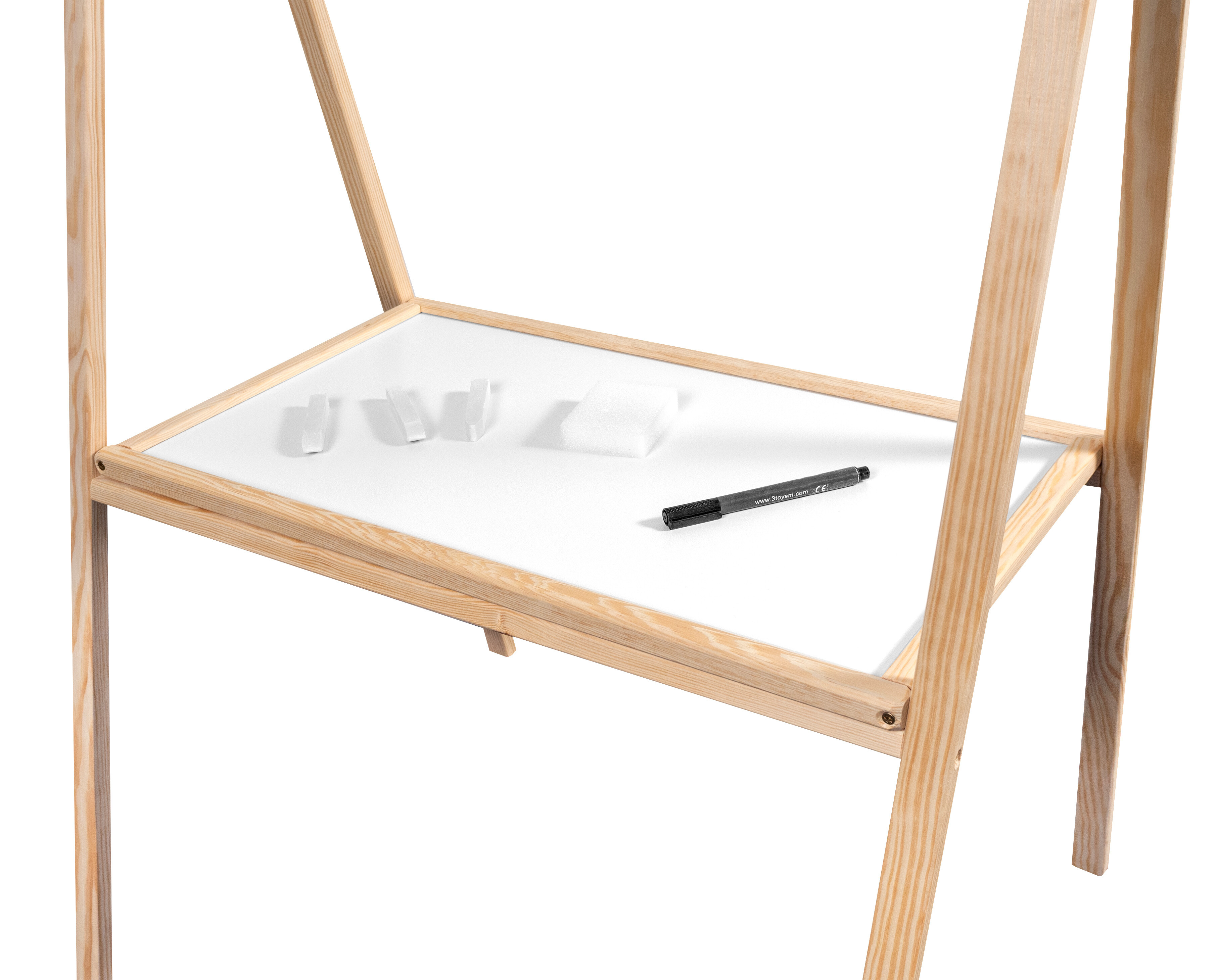 Децата могат да рисуват от черната страна на дъската с класически тебешири, а от другата, бялата страна - с цветни маркери.
