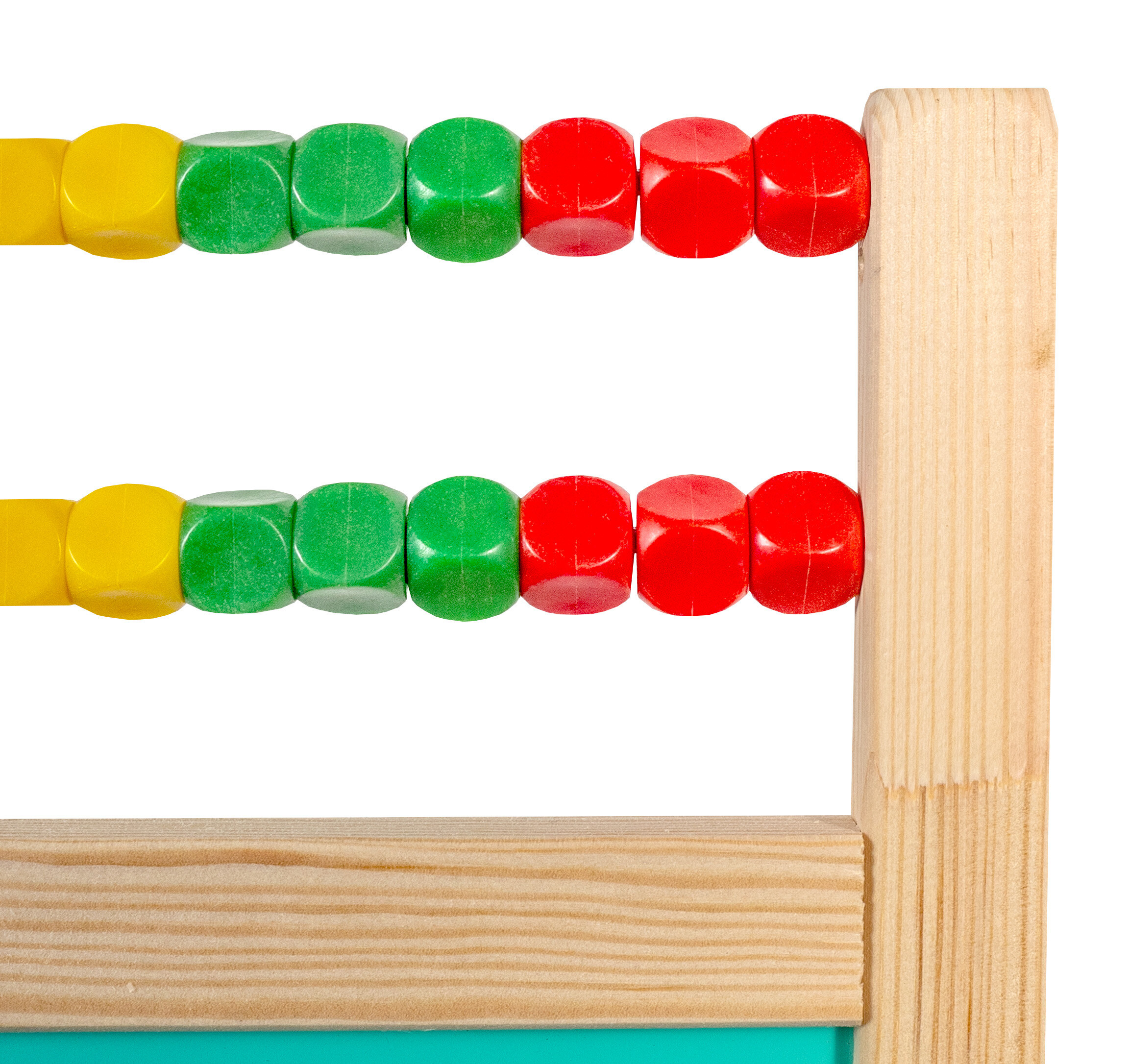 Може да се рисува и от двете страни на дъската, от едната с маркер, а от другата с тебешири. Част от дъската е и двуредно сметало, което съдържа 15 цветни топчета във всеки ред.