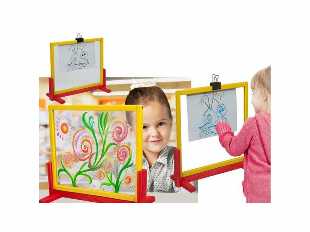 Детска магнитна креативна дъска от прозрачно безопасно стъкло (плексиглас), върху която могат да се рисуват различни шарки и рисунки с бои и маркери.
