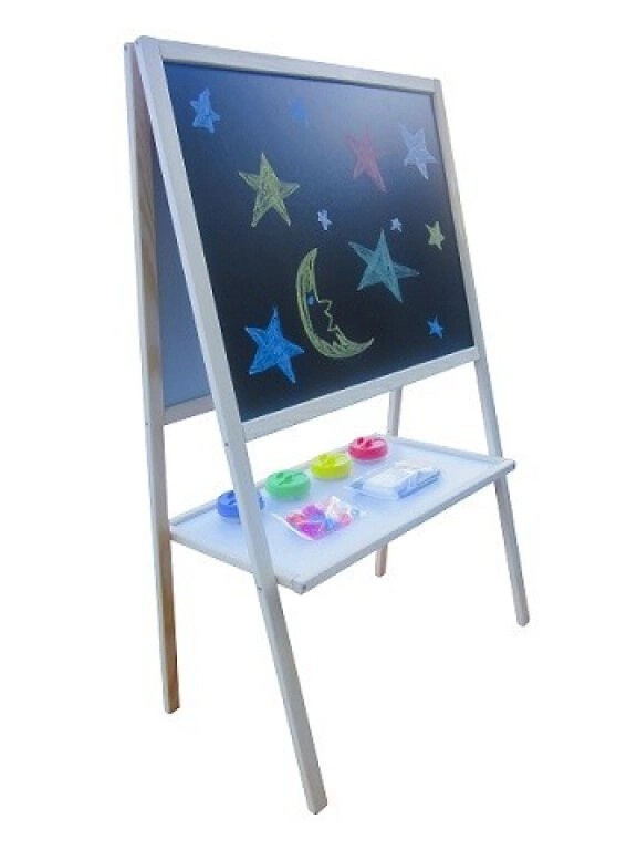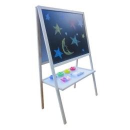 Двустранна детска магнитна дъска с рафт за съхранение, на практична стойка, от фирма Aga4Kids.