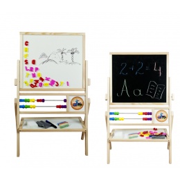 Децата могат да рисуват на черната дъска с класически тебешири, а на другата, бяла дъска, с цветни маркери.
