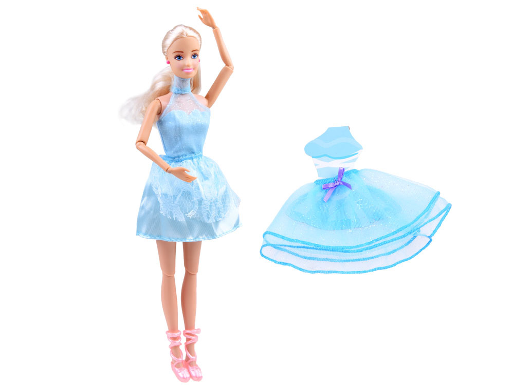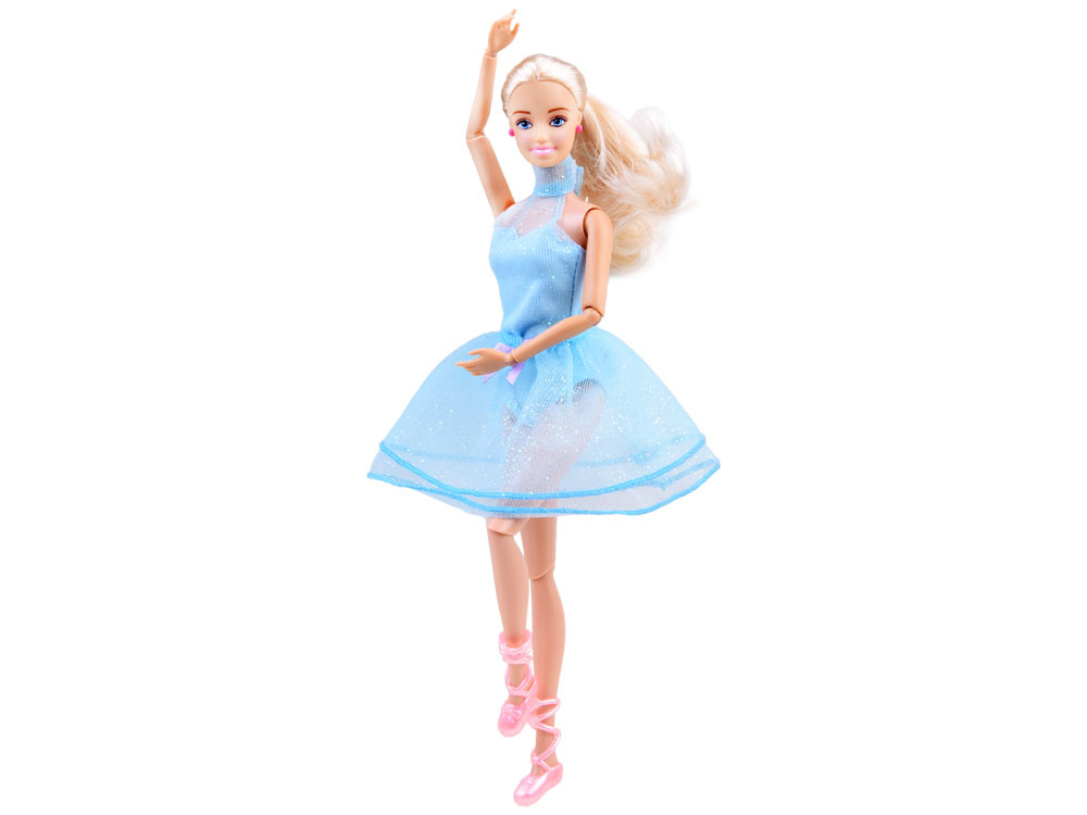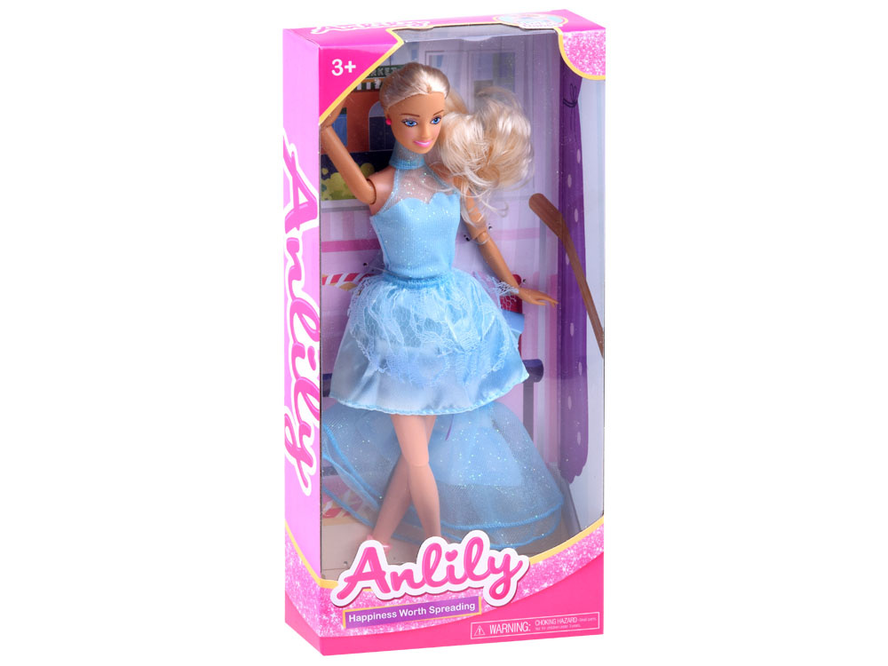 Елегантната кукла Anlily с дълга руса коса, облечена в красива синя рокля, ще зарадва всяко малко момиченце. Куклата има огъващи се крайници в областта на лактите и коленете, което е чудесно, за да си играете с нея като с танцьорка, балерина. В допълнение към роклята, с която е облечена куклата, тя се предлага с допълнителна пола от брокат, а краката на куклата са украсени със сладки балетни обувки в розово.