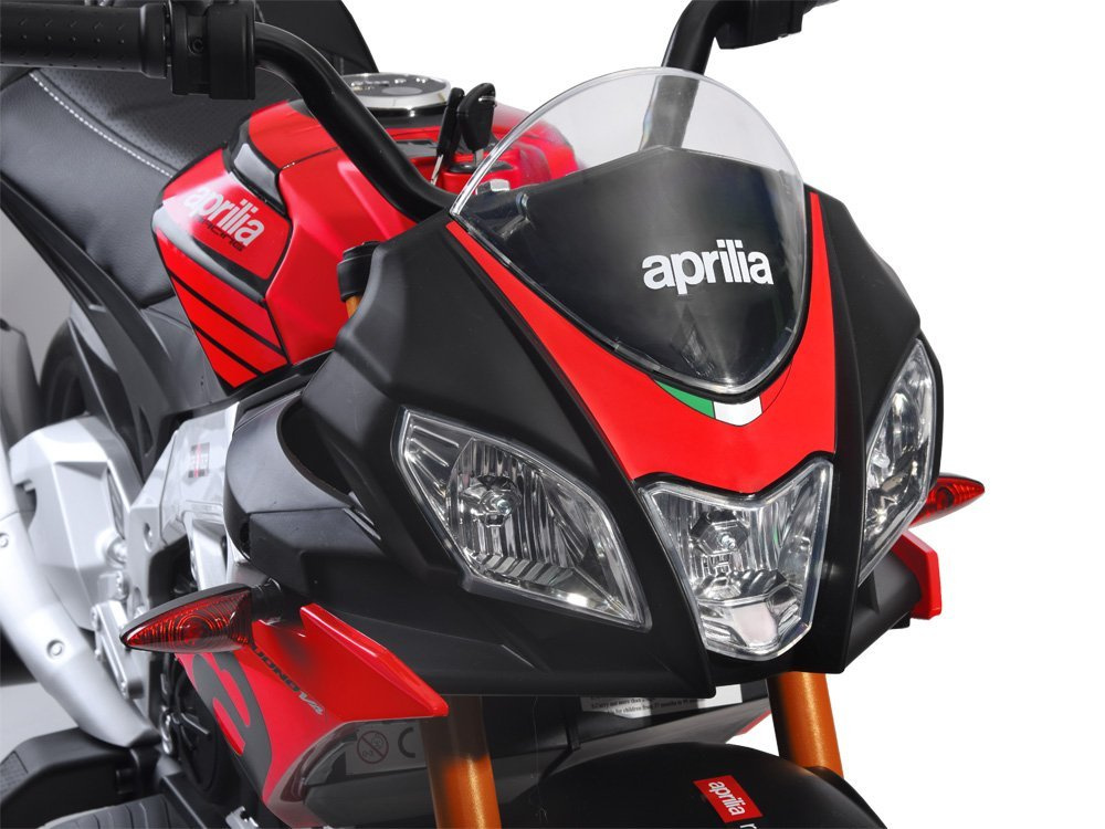 Състезателният Aprilia Tuono V4 е лицензиран мотоциклет на батерии, предназначен за малките фенове на тези превозни средства, който е изработен много впечатляващо и реалистично с акцент върху най-фините детайли.Моторът е предназначен за деца от 3 години. Страхотният дизайн на мотоциклета позволява каране в прави улички, на тротоара и дори на равнина.