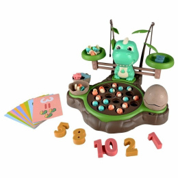 Играта за умения Лов на динозаври за деца е завладяващо забавление, което не само предоставя развлечение, но и подпомага развитието на математическите и мануалните умения при най-малките. На базата се намира подвижна мишена, от която могат да се ловят малки динозаври с помощта на специални пръти. Зад щита се намира голям динозавър, на който децата могат да играят с везна и карти със задачи и числа за изучаване на математика. Комплектът съдържа: - 21 малки динозаври - везна с динозавър - игрална дъска - две отварящи се яйца за събраните динозаври - два пръта - карти със задачи - цифри 1-10 Захранване: 2x AA Не е предназначено за деца под 3 години. Размери на опаковката: 31x29,5x11см Брой части. на палета 90 бр.