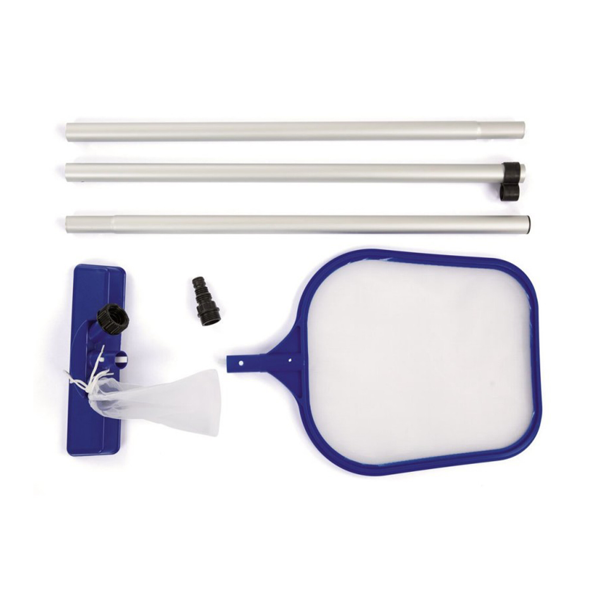 Комплектът за поддръжка на басейни Bestway 58013 е практичен комплект за редовно почистване на басейни и отстраняване на замърсявания. Комплектът включва лек прът със сменяеми глави за засмукване и избърсване.