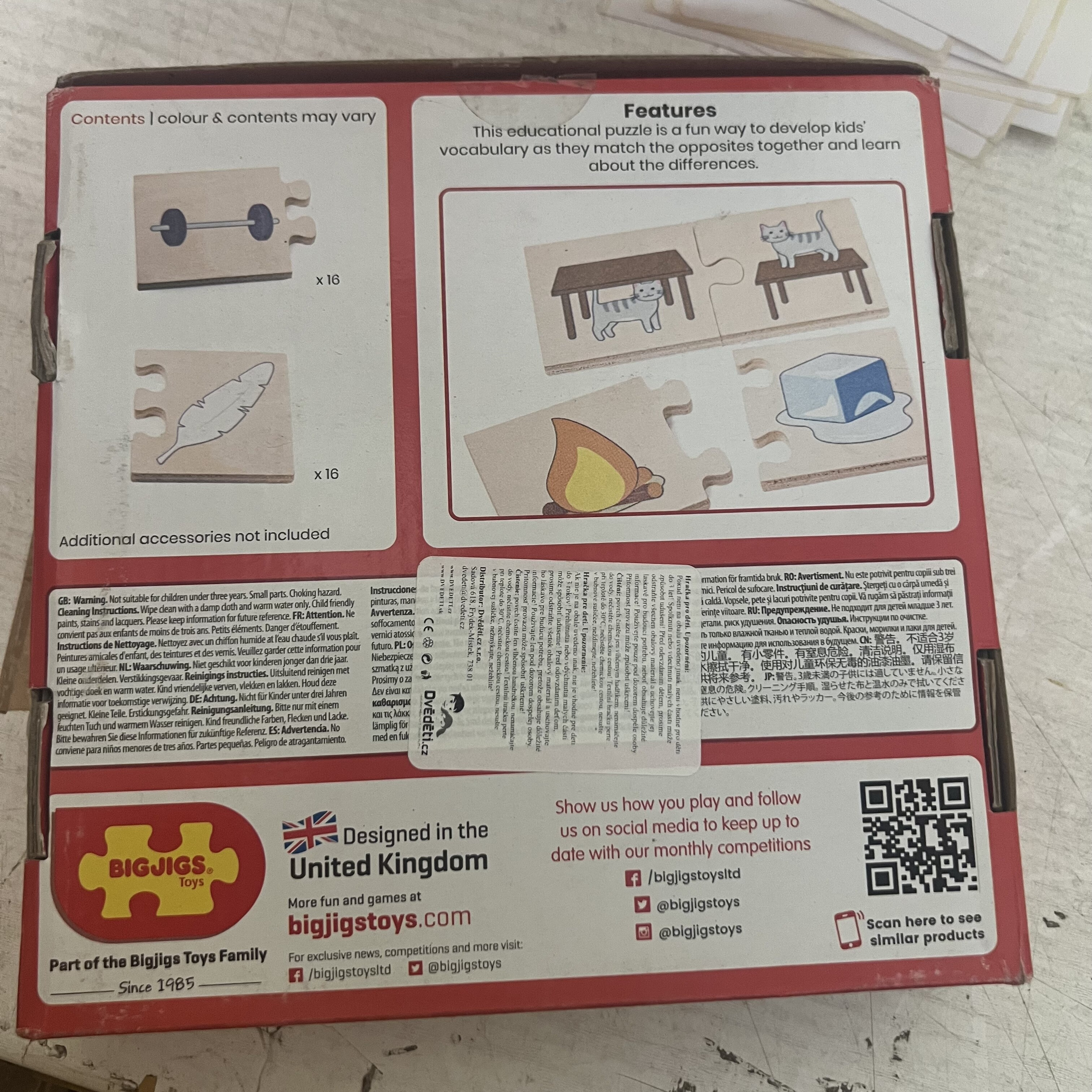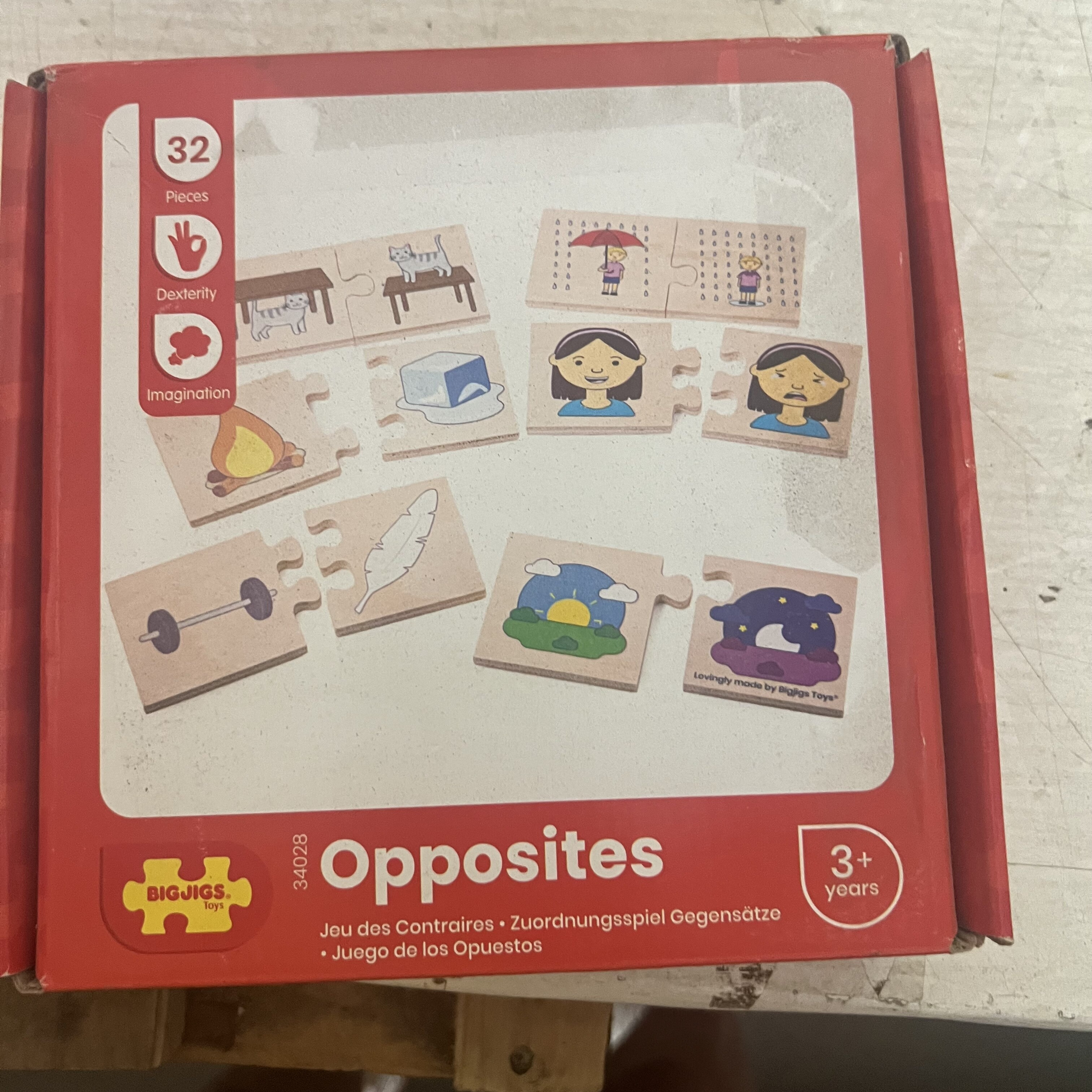 Можете ли да съчетаете правилните противоположности?Нашият пъзел Противоположности учи децата за различни ежедневни предмети и неща, които са взаимни противоположности.Какво е обратното на тъжен?Какво е обратното на студ?Този дидактически пъзел е забавен начин за развиване на речника на децата, когато свързват противоположности.Гладките здрави парчета от пъзела имат идеален размер за малки ръчички, за да могат да ги хващат, поставят и изследват.Изработено от първокласна, отговорно добита дървесина.Отговаря на актуалните европейски стандарти за безопасност. Изработено от висококачествени, отговорно добити материали.