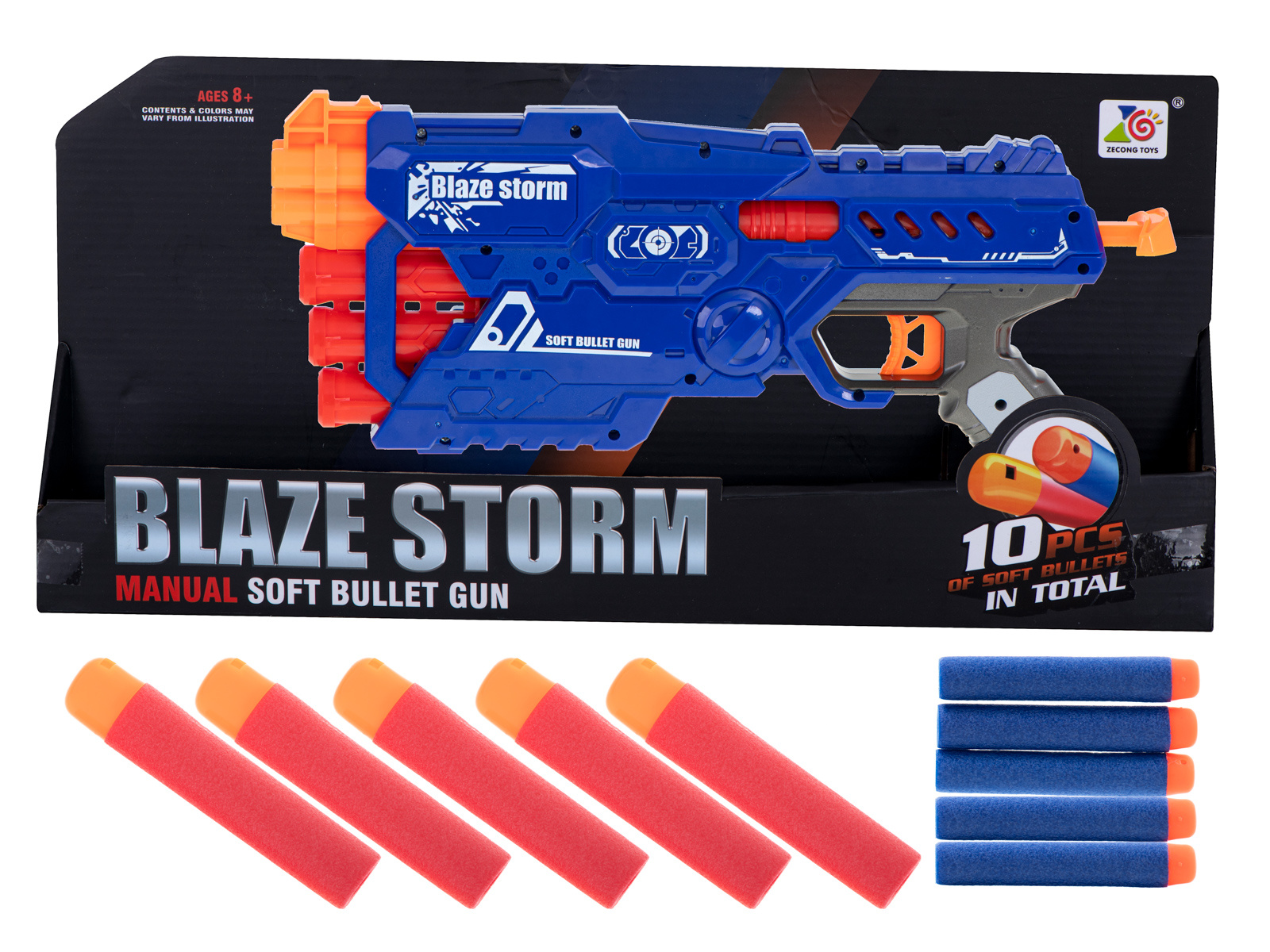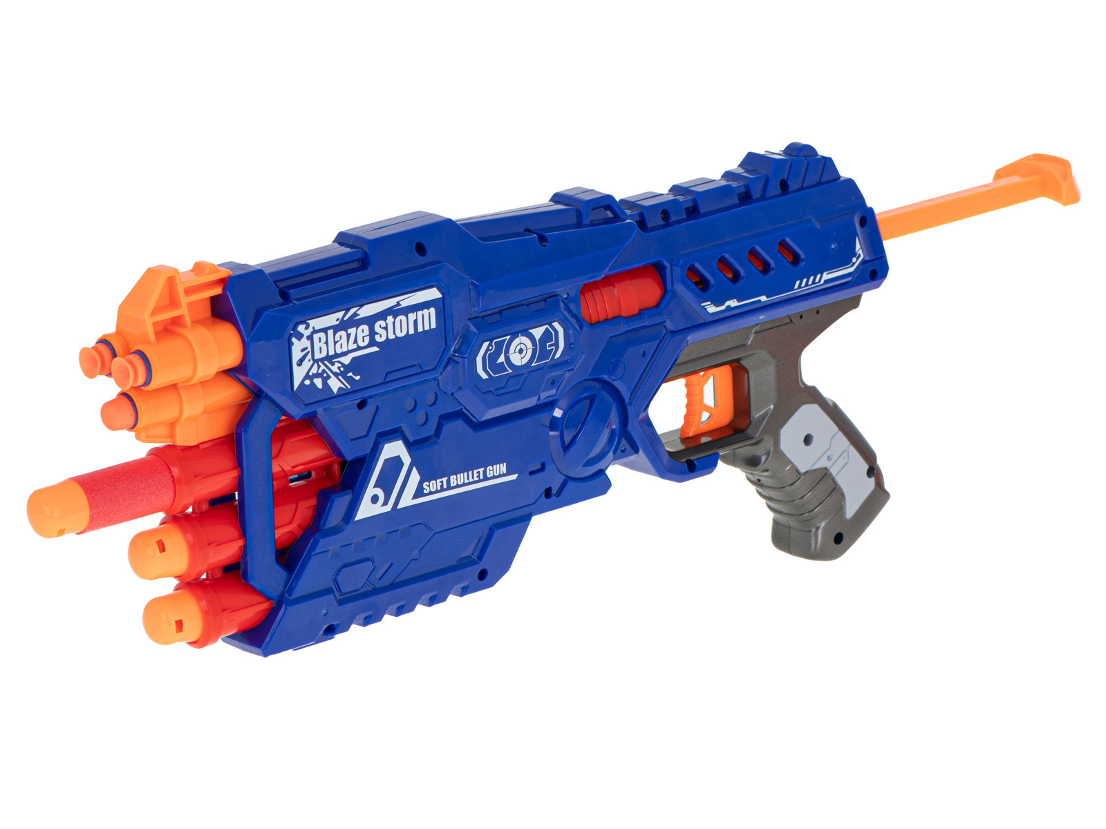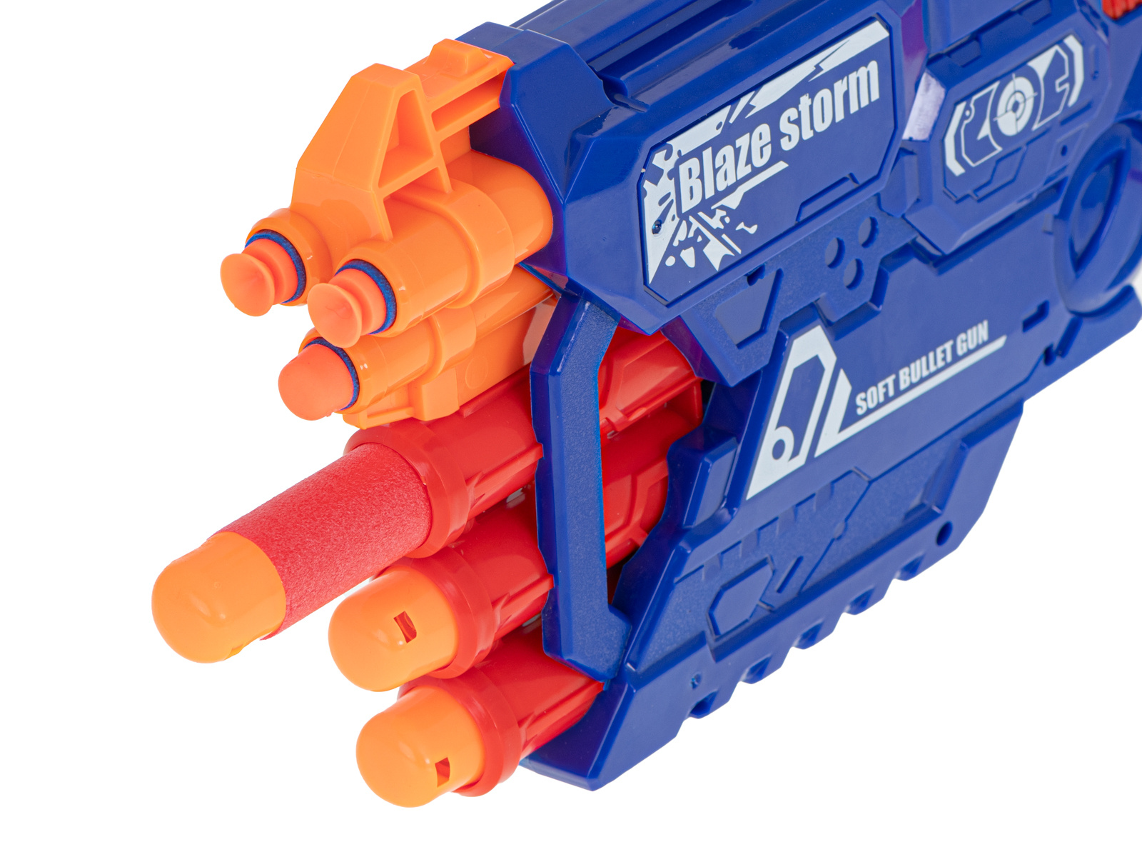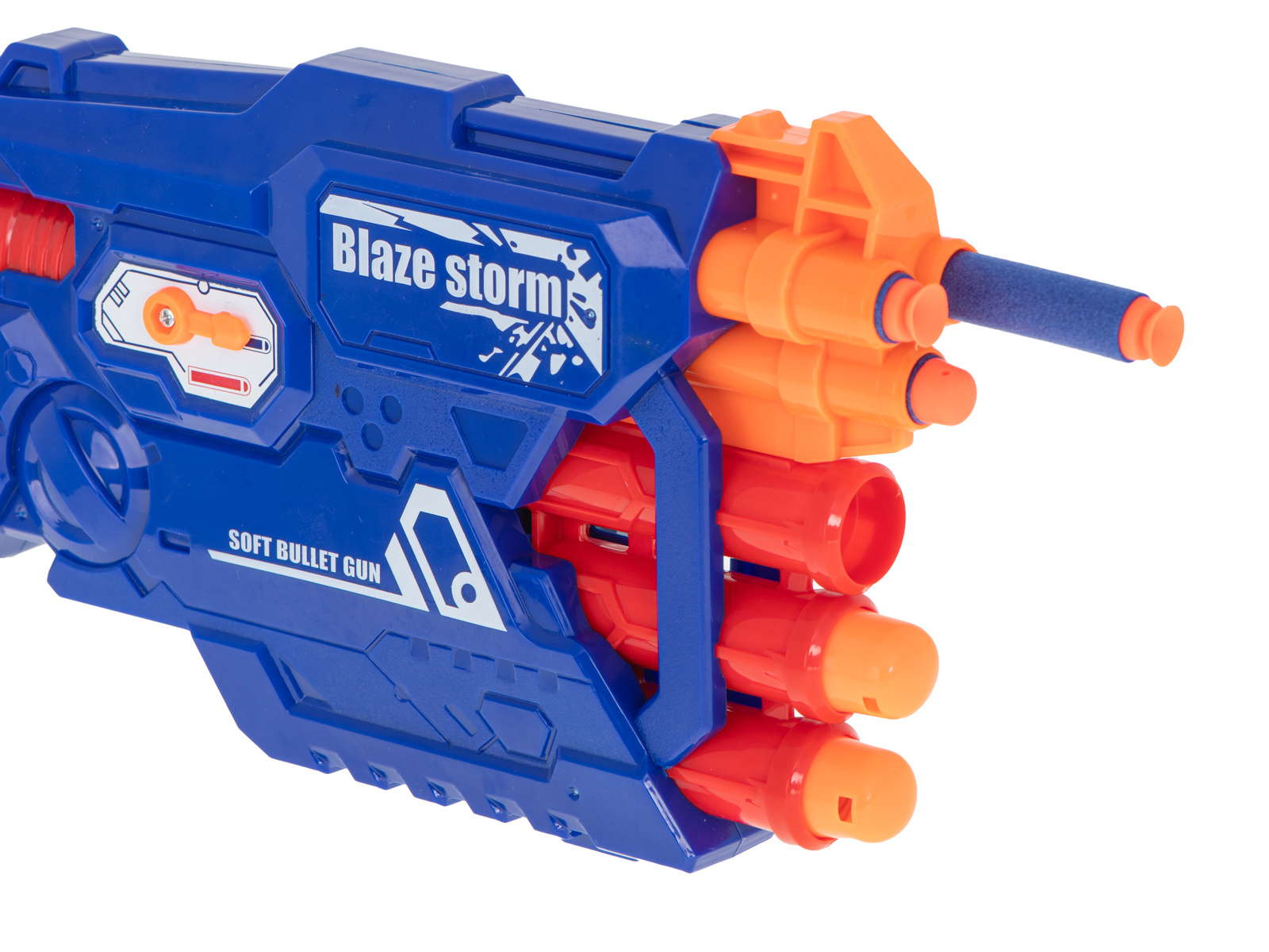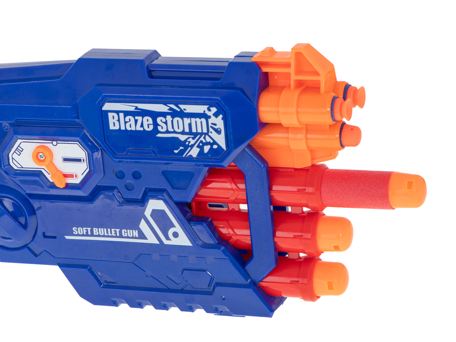 Фантастичната пушка BLAZE STORM, оборудвана с шестзаряден пълнител за 2 вида куршуми , ще бъде идеалното оръжие за малък войник.