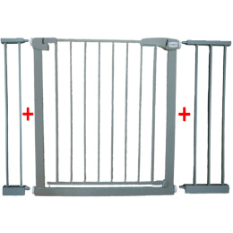 Спецификация: врата, изработена от метал, прахово боядисана, марка R-sport, регулируема ширина, позволяваща монтаж в различни отвори, закрепване чрез разпъване - лесен монтаж, състоящ се в завиване и настройка на разпъващите винтове, отваряне в двете посоки, лесно автоматично затваряне, двойно блокиране на отварянето - допълнителна защита при отваряне (необходимо е да се натисне бутонът в ключалката и допълнително леко да се повдигнат вратите), ефективно блокира достъпа до опасни места, съдържа 2 разширения Комплектът съдържа врата с вратичка и ключалка, 2 разширения, 2 метални удължителни елемента и 4 винта с пластмасови гайки и силиконови капачки.