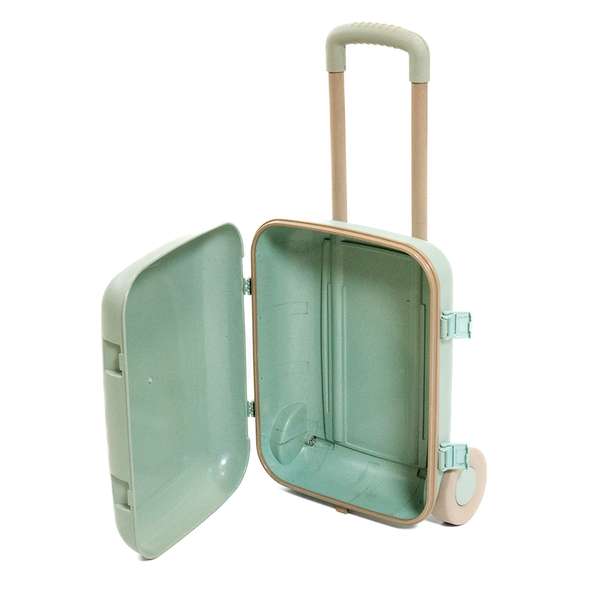 Светлокафяв детски куфар на колела е перфектният аксесоар за всяко пътуване. Има изтегляща се дръжка, която е съобразена с височината на детето. Закопчава се с катарами. Вътре има едно основно отделение за съхранение на любимите вещи на детето. Вече можете да очаквате нови приключения с чудесен спътник за пътувания.