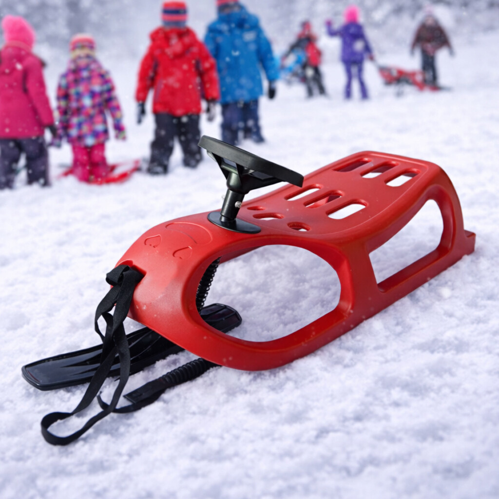 Шейните са изработени от високоустойчив пластмаса и са оборудвани със стоманени плъзгачи, които осигуряват перфектно плъзгане по снега.Шейната се управлява лесно благодарение на средната водеща шина, която се управлява с волан.