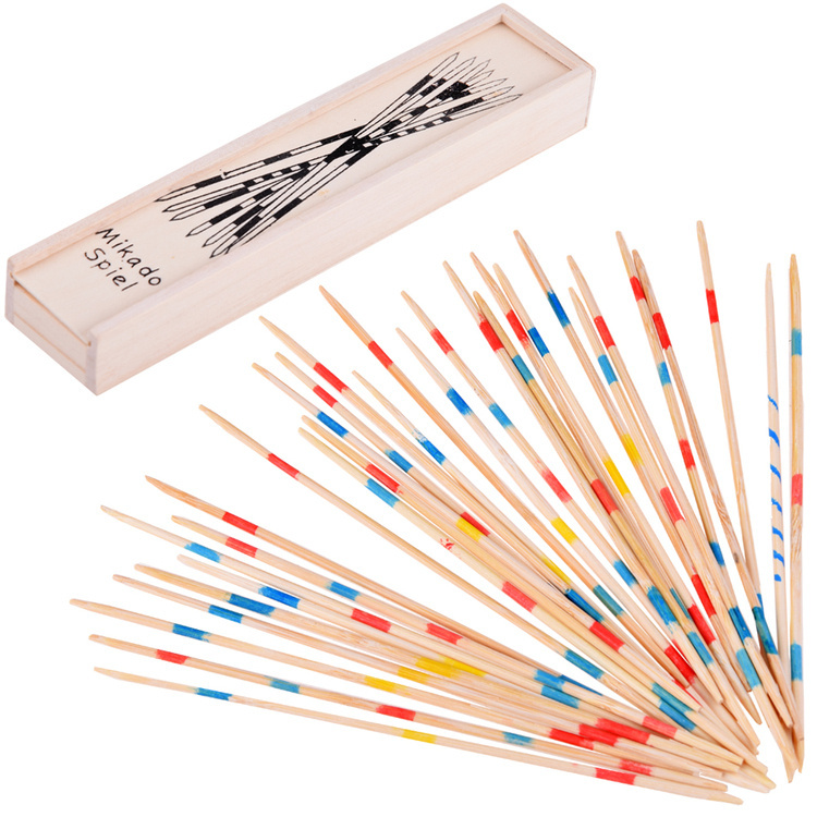 Mikado е аркадна игра, която се играе от поне двама души.отделните ленти се различават по броя и цвета на боядисаните ивици, които показват стойността на портмонето. За да започнете играта, разпръснете сноп пръчки на масата и ги дръжте вертикално в дланта си. Така се създава купчина, от която играчите трябва да вземат по един зар, за да не преместят останалите. Ако по време на играта бъде преместена дори една лента, ходът се губи и задачата се поема от следващия играч. Победител е играчът, който събере пръчките с най-голям брой. Играта развива търпението, концентрацията и умението да контролирате собственото си тяло.