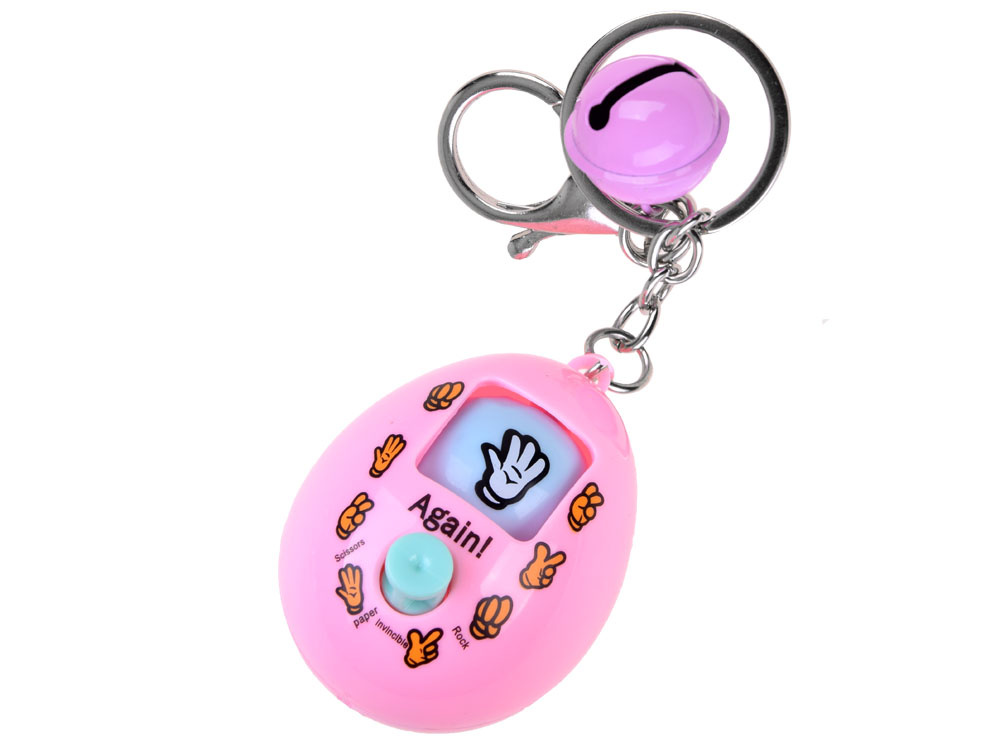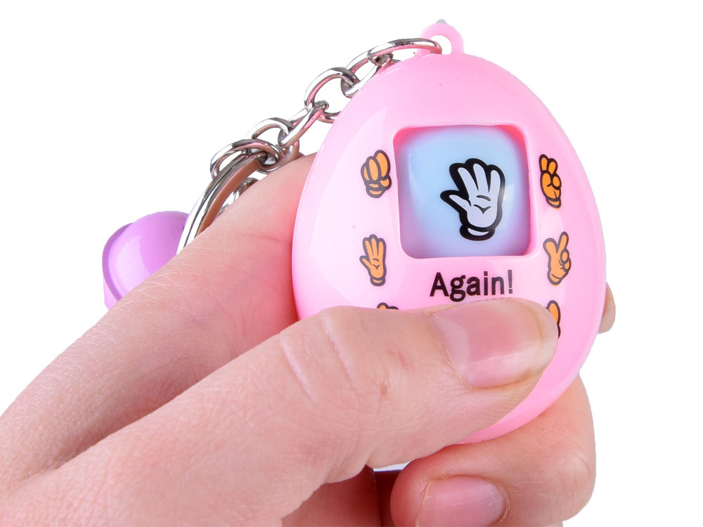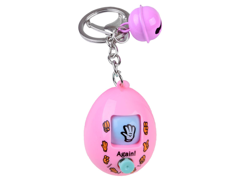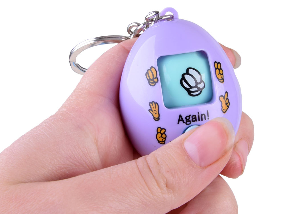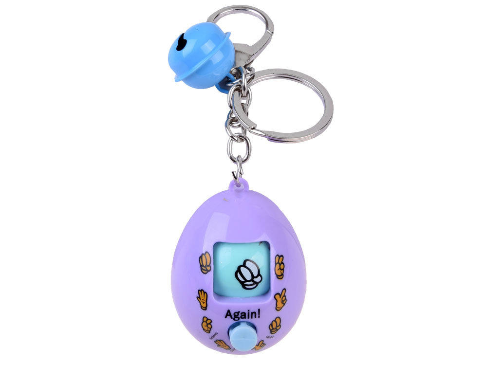 Цветният ключодържател с форма на яйце и игра е идеален за ученически раници и чанти. В медальона е вградена популярната игра "камък, ножица, хартия", просто натиснете бутона и въртящата се лапа ще ни покаже героя. Този страхотен медальон ще ви бъде полезен, докато чакате автобуса или докато се обзалагате с приятел.