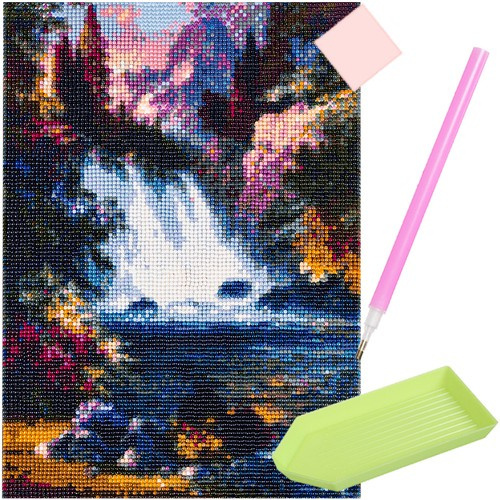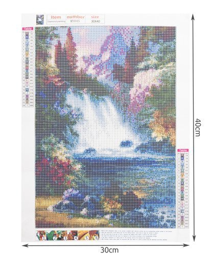 СПЕЦИФИКАЦИЯ – модел: водопад; платно, покрито с лепящ слой: да; в комплекта: цветни диаманти, апликатор, сухо лепило, контейнер; размер: 30x40 см; размер на изображението: 25x35 см; тегло: 0,1 кг; тегло в опаковка: 0,103 кг