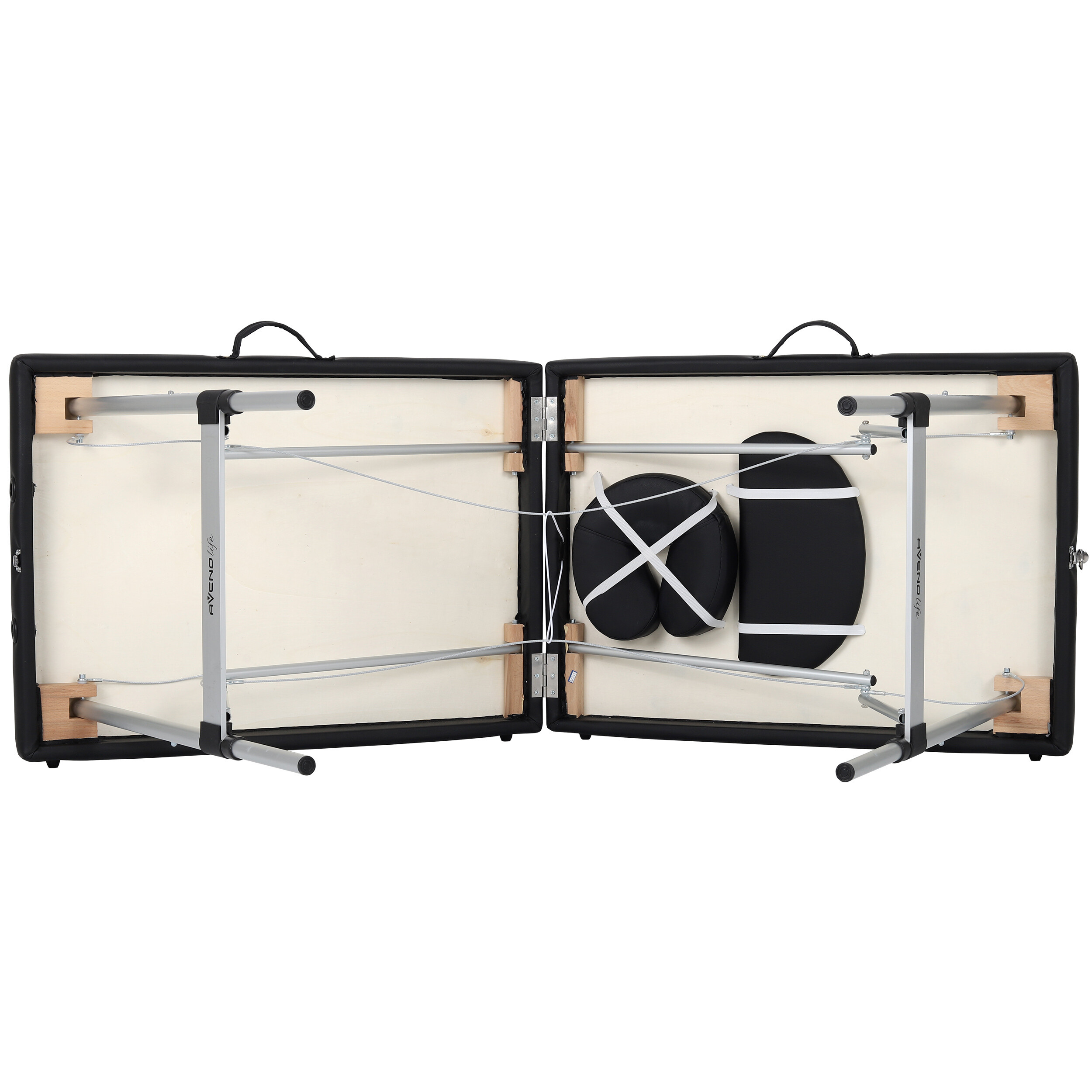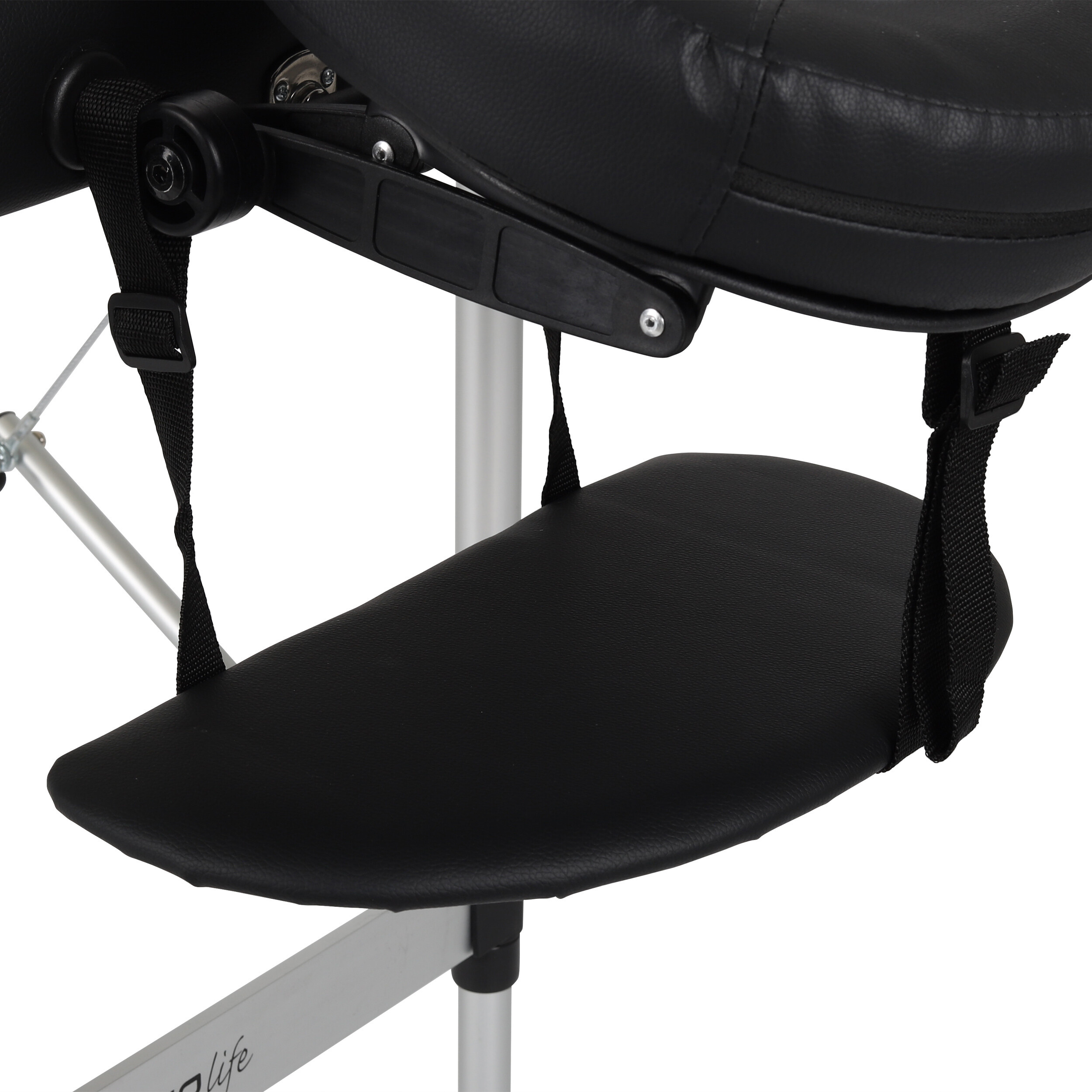 Едно от основните предимства на този шезлонг е неговата лесна манипулация и преносимост. Благодарение на леката алуминиева конструкция и сгъваемия механизъм, шезлонгът е лесно преносим и компактен. Това ще бъде оценено особено от мобилните масажисти, които трябва често да пренасят леглото между различни места. Освен това, шезлонгът е оборудван с практична чанта за лесно пренасяне и защита по време на транспорт.
