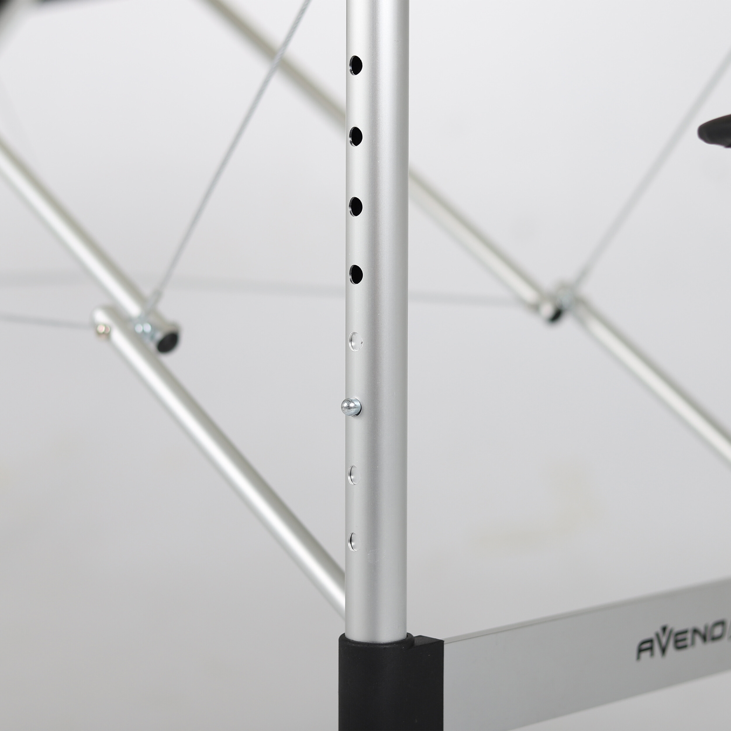 Безопасността и стабилността са ключови при масажа. Алуминиевото масажно легло е оборудвано с противоплъзгащи крачета, които осигуряват стабилно поставяне на всякаква повърхност. Регулируемата височина на кушетката позволява да се адаптира нейната височина според нуждите на масажиста, което осигурява ергономична и удобна работа. Благодарение на усилването с помощта на стоманени въжета и закрепващи колчета на всеки подпорен крак, е в състояние да издържи товар до 250 кг.