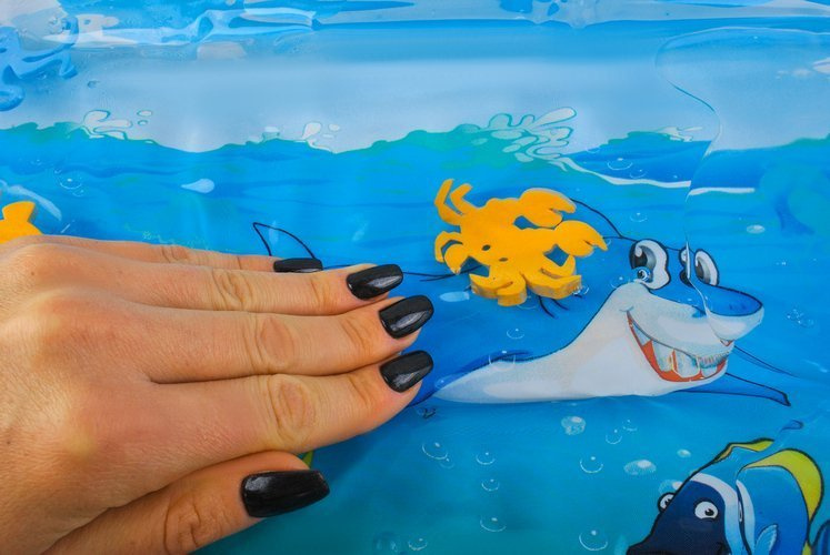 ПЪТ НА БОЛКАТА В КОРЕМА - Водната подложка е идеална при колики или болки в корема на малки деца.Напълнете предмета с топла вода и поставете бебето по корем с одеяло или пелена отгоре. Малкото дете ще се погрижи за забавлението, което ще отвлече вниманието му, а подложката ще облекчи болката и дискомфорта.Подготовката на подложката за игра отнема няколкоминути. Достатъчно е да я напълните с въздух и след това да налеете вода вътре.Играчката не тече, така че можем да оставим водата вътре без притеснения за мокър под.