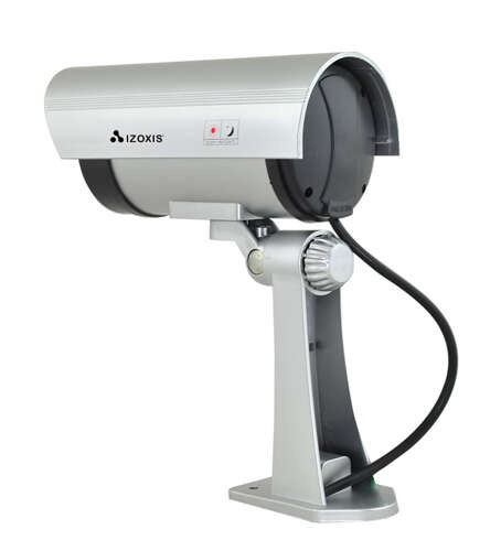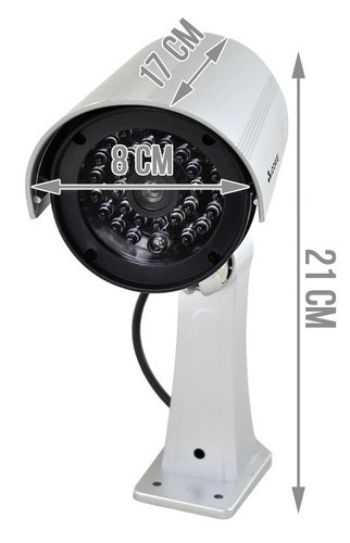 Перфектно изглеждаща пластмасова имитация на охранителна камера. Устройството е оборудвано с вградена червена LED.Лесна инсталация. Макет на CCTV камера за наблюдение. Благодарение на използването на всички елементи, които има обикновена камера, а именно обектив, кабел и държач, манекенът е точно копие на индустриална камера. За наблюдение на хората не са необходими скъпи разрешителни. Устройството е оборудвано с вграден мигащ червен LED. Камерата е практически без поддръжка. Възможност за завъртане и накланяне на камерата. Камерата създава впечатление, че на мястото има система за наблюдение и възпира потенциалните нарушители.