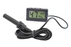 Електронен влагомер с термометър с голям LCD дисплей и сонда на дълъг кабел. Устройството се характеризира с добро измервателно разделение и бърза реакция. Просто ги поставете на отворената ръка и почти веднага ще видите реакцията на инструмента. Сондата (сензорът) може да бъде поставена навсякъде - в аквариум, терариум, хладилник, фризер, оранжерия и т.н., навсякъде, където е достатъчен обхватът на измерване на температурата от -50 градуса C до 70 градуса C.