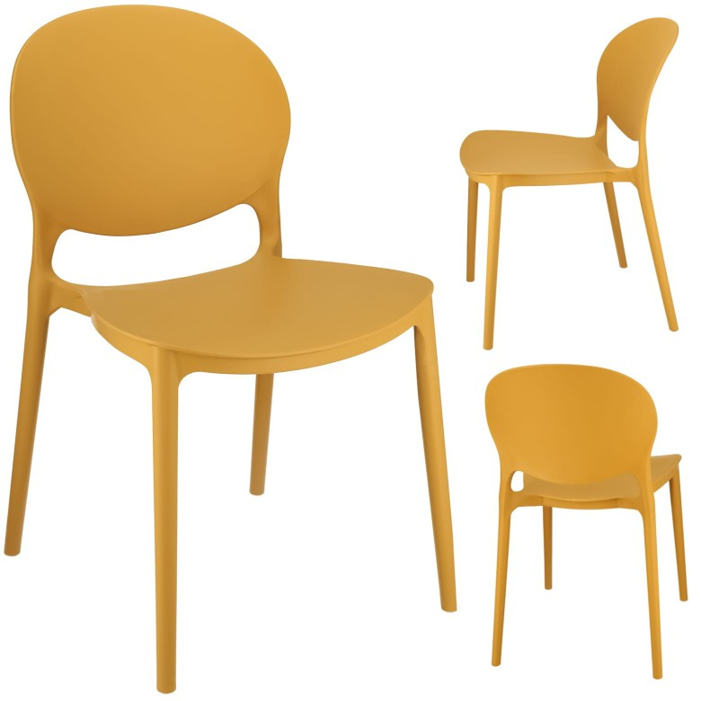 Столове от колекцията JUSTIN Овалната облегалка и целият стол са изработени от полипропилен за по-голяма издръжливост, а правите крака осигуряват идеална стабилност. Столът е изработен от едно цяло парче - не изисква завинтване и е устойчив на атмосферни влияния, така че може да се използва на закрито или на открито.