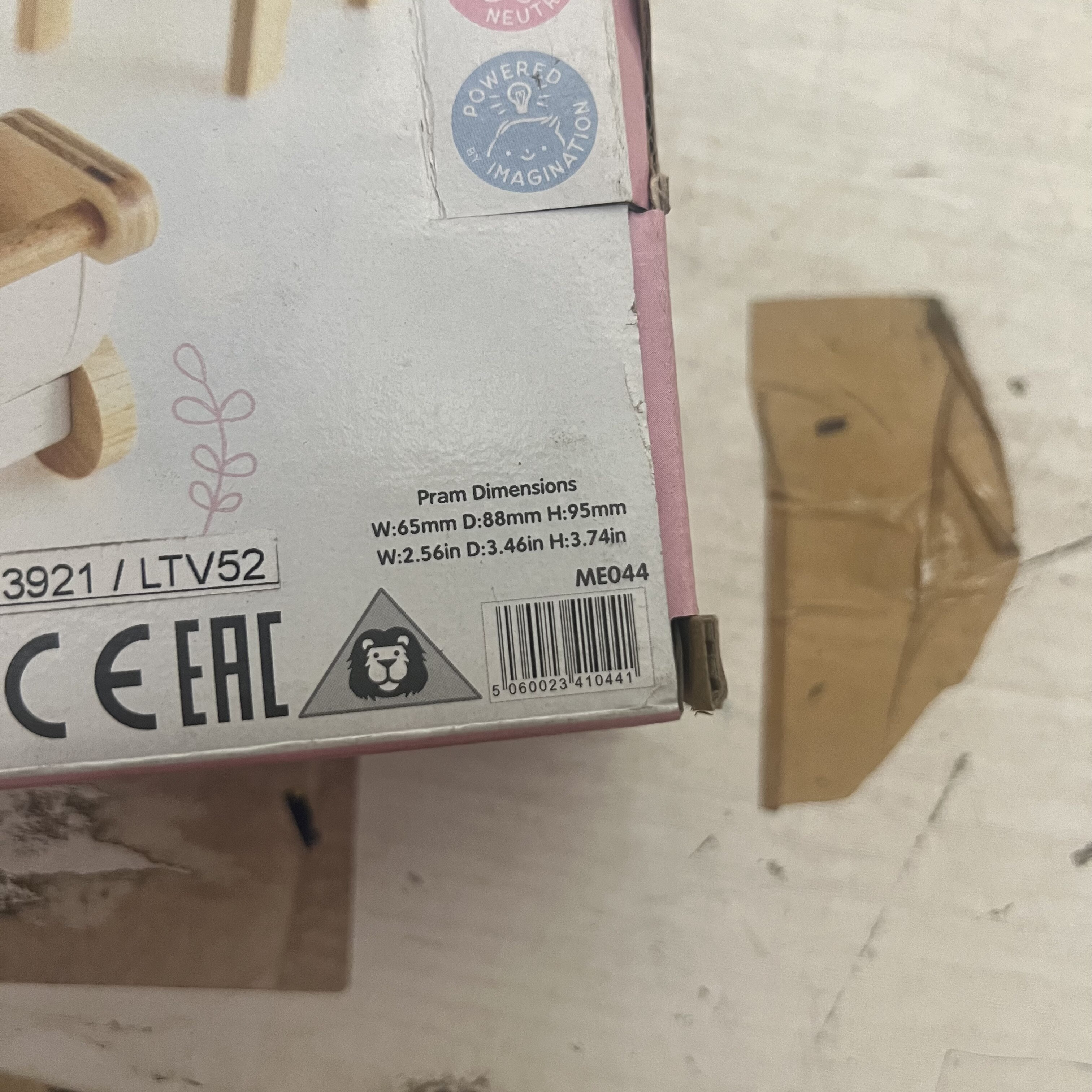 Дървена боядисана количка с фигурка на бебе. Комплектът включва високо столче за хранене, комплект за хранене за бебе и чанта. Текстилните аксесоари са изработени ръчно. Произведено екологично от естествена, устойчива каучукова дървесина. Основни характеристики: Размери на трапезния стол 5x6x8 см. Изработен от издръжлива, устойчива каучукова дървесина. Етично произведено с любов. Щателно тествано, за да отговаря на най-високите стандарти за безопасност. Декорирано с нетоксични бои на водна основа. Подпомага креативността чрез въображаема игра. Помага за развиване на фината моторика и координацията.