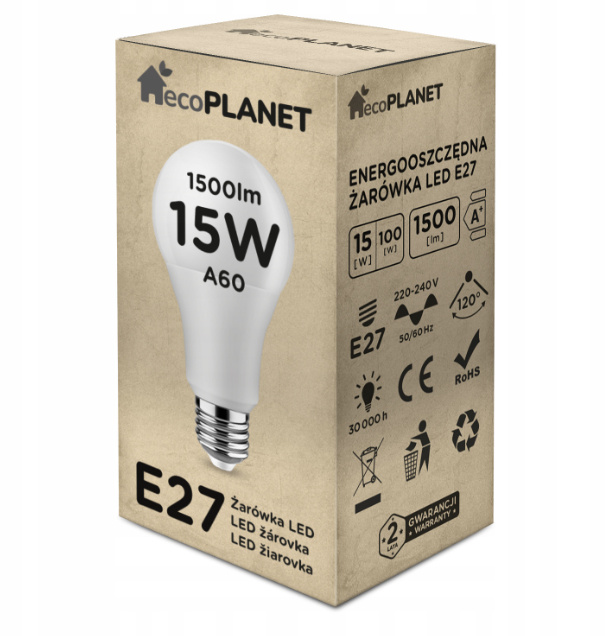 Висока ефективност 1500lm за неутрален цвят (еквивалентно на 60W традиционна халогенна крушка)