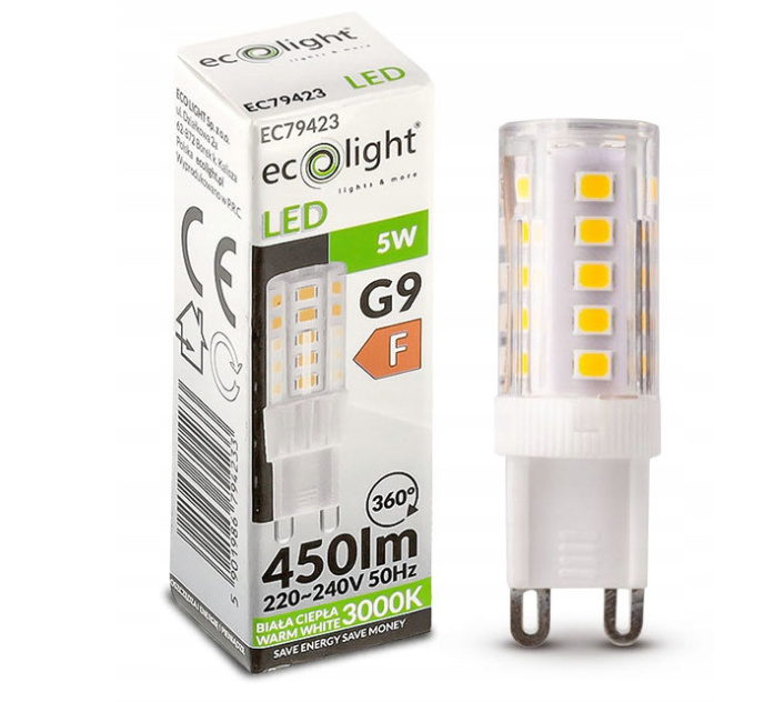 - Този цокъл е малък и компактен и крушките G9 често се използват в таванни осветителни тела, настолни лампи или висящи осветителни тела.