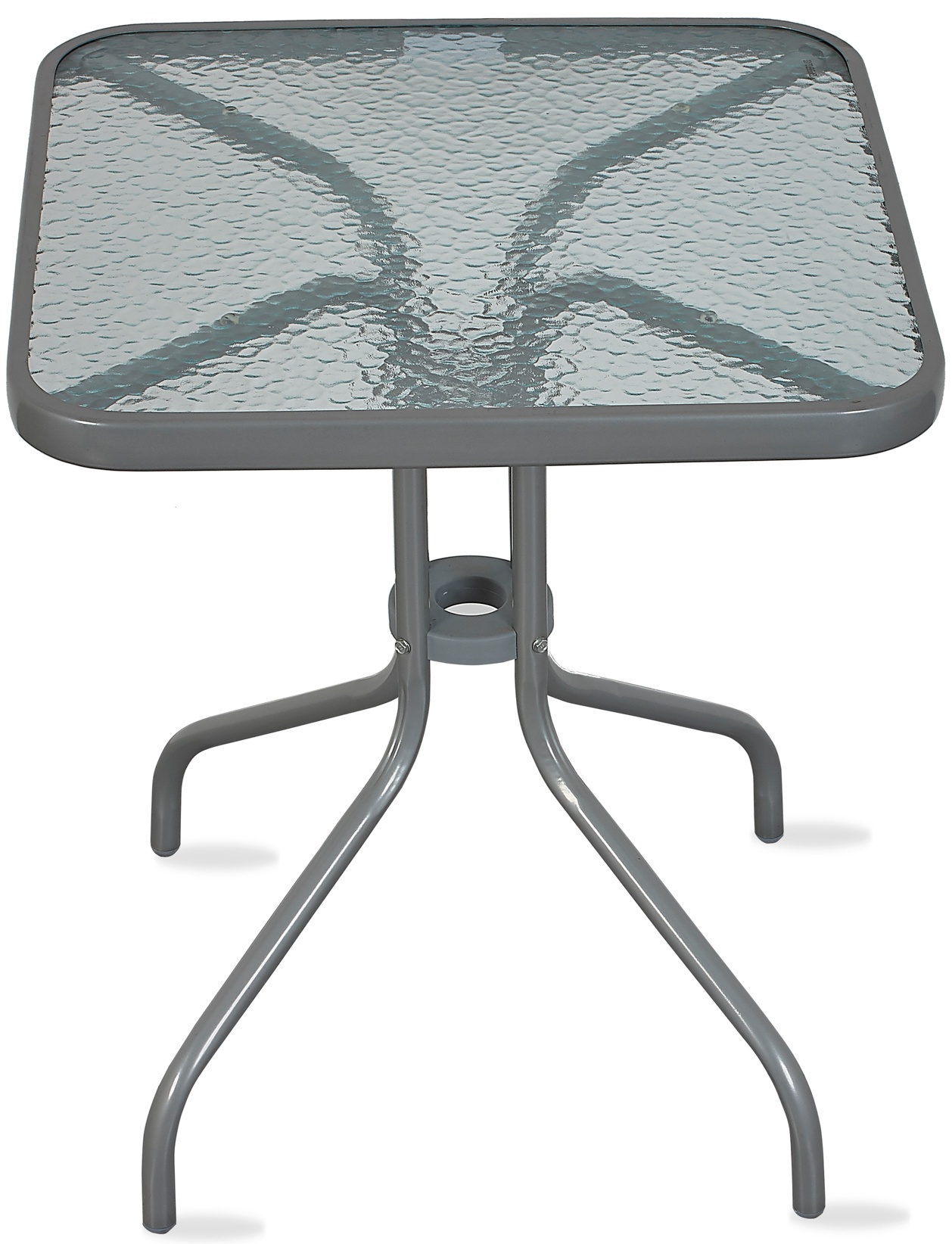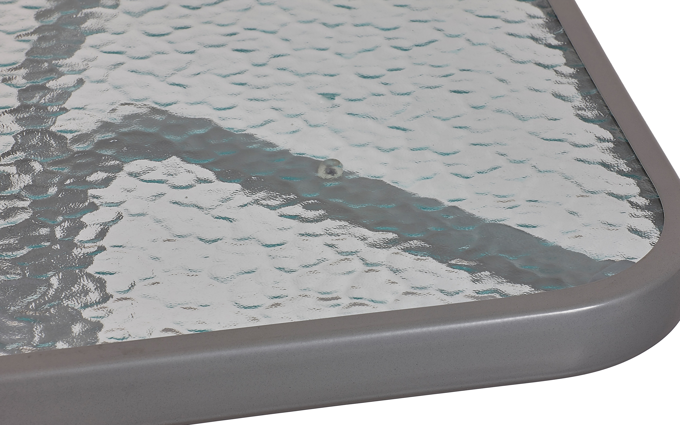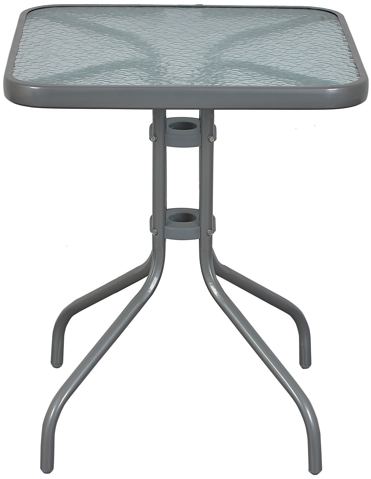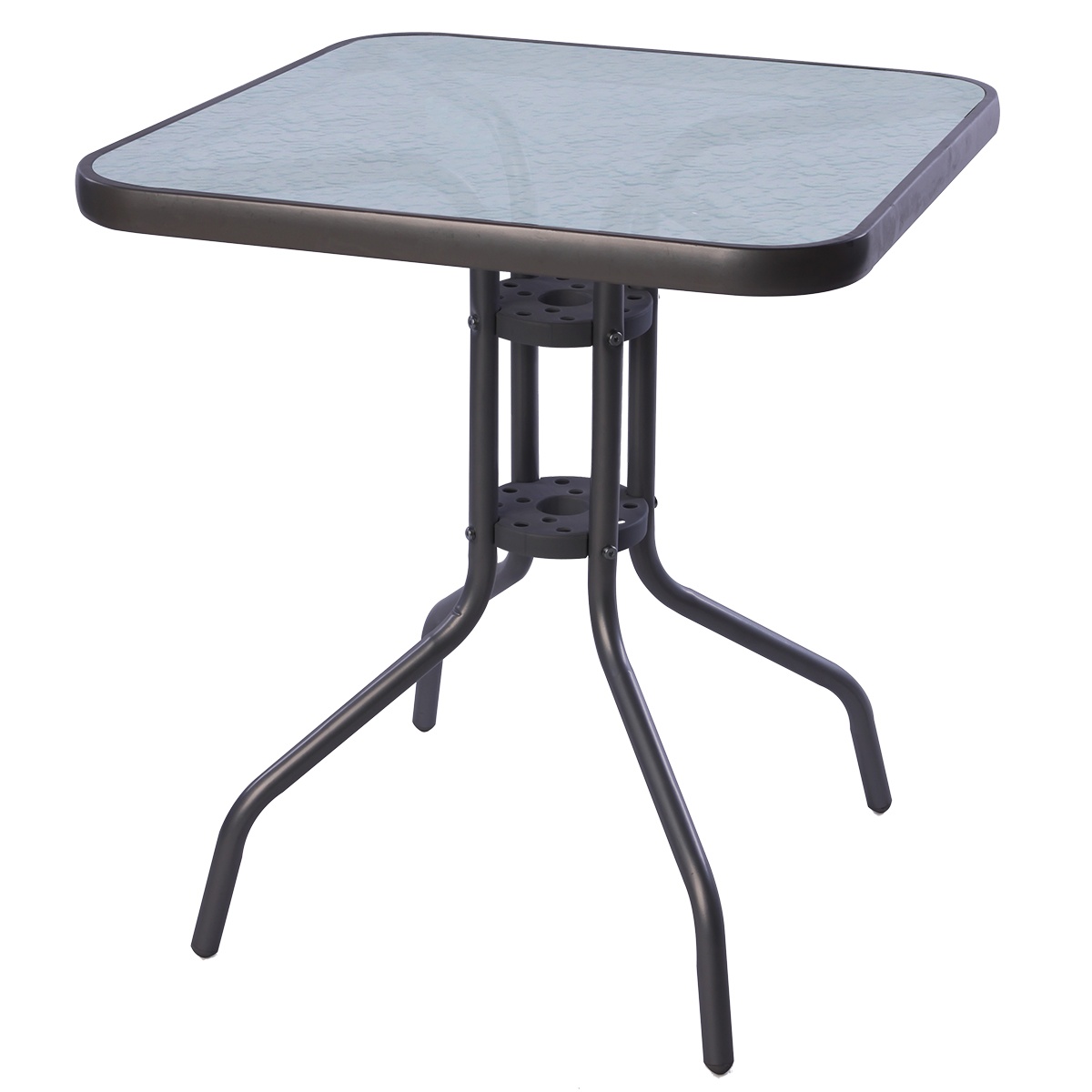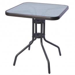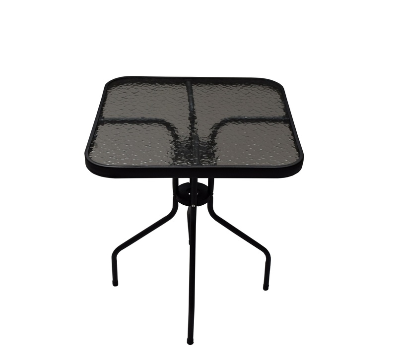 Градинска маса BISTRO с масивна метална рамка и стъклен плот с вдлъбнатини в модерен дизайн, подходяща за градини, тераси , кафенета, беседки, балкони или плажове.