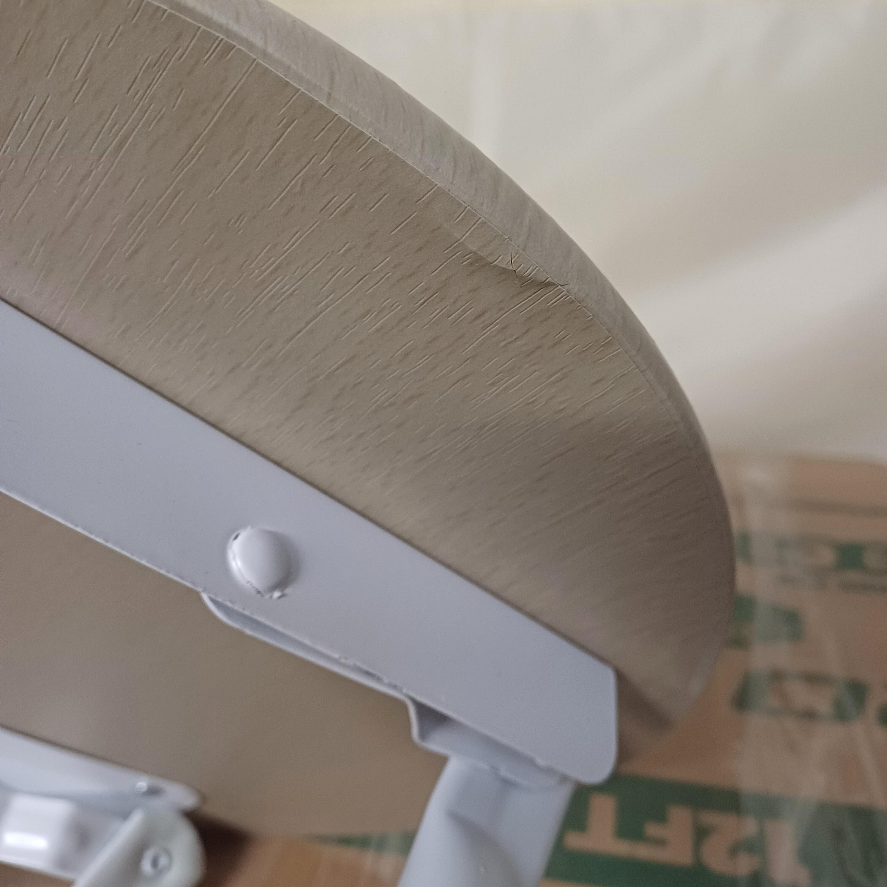 Продуктът е напълно функционален, повърхността на стола има драскотини и на някои места се лющи фурнирът.