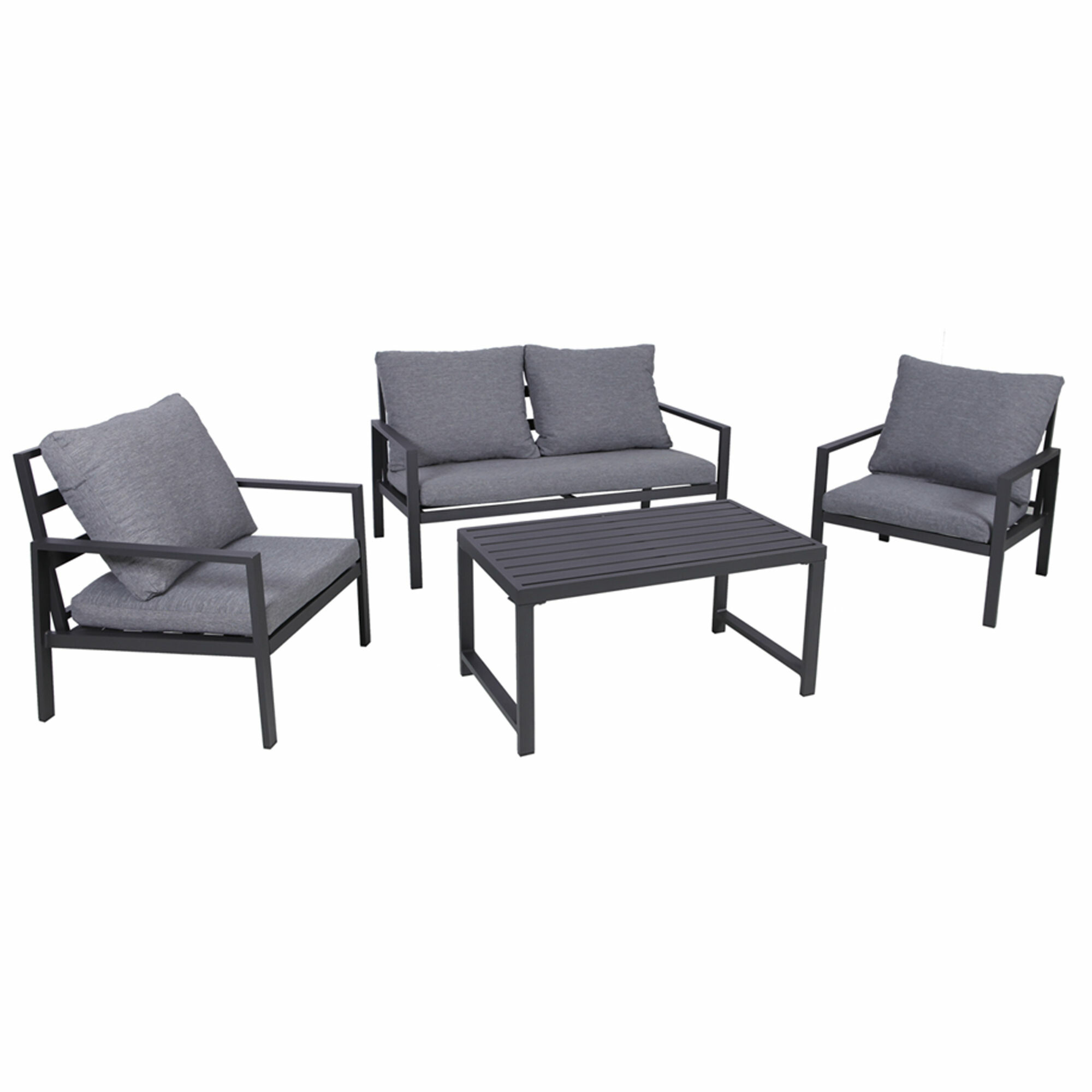 Леката и издръжлива конструкция на градинския комплект е изработена от висококачествен и здрав алуминий, който е покрит с прахово боядисване.